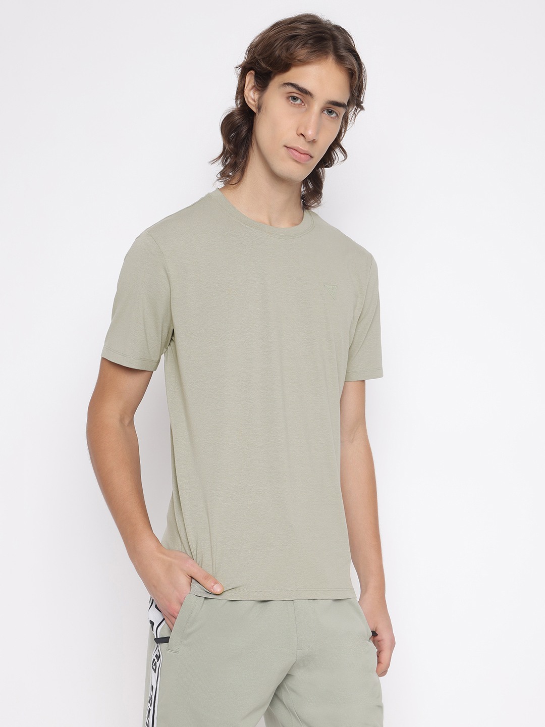 Experience comfort and style with our green t-shirt, featuring a regular fit and solid pattern. Crafted from a soft cotton blend, it offers a breathable feel. The short sleeves and classic crew neck design make it versatile for any occasion. Easy slip-on closure ensures convenience for everyday wear. Perfect for men.