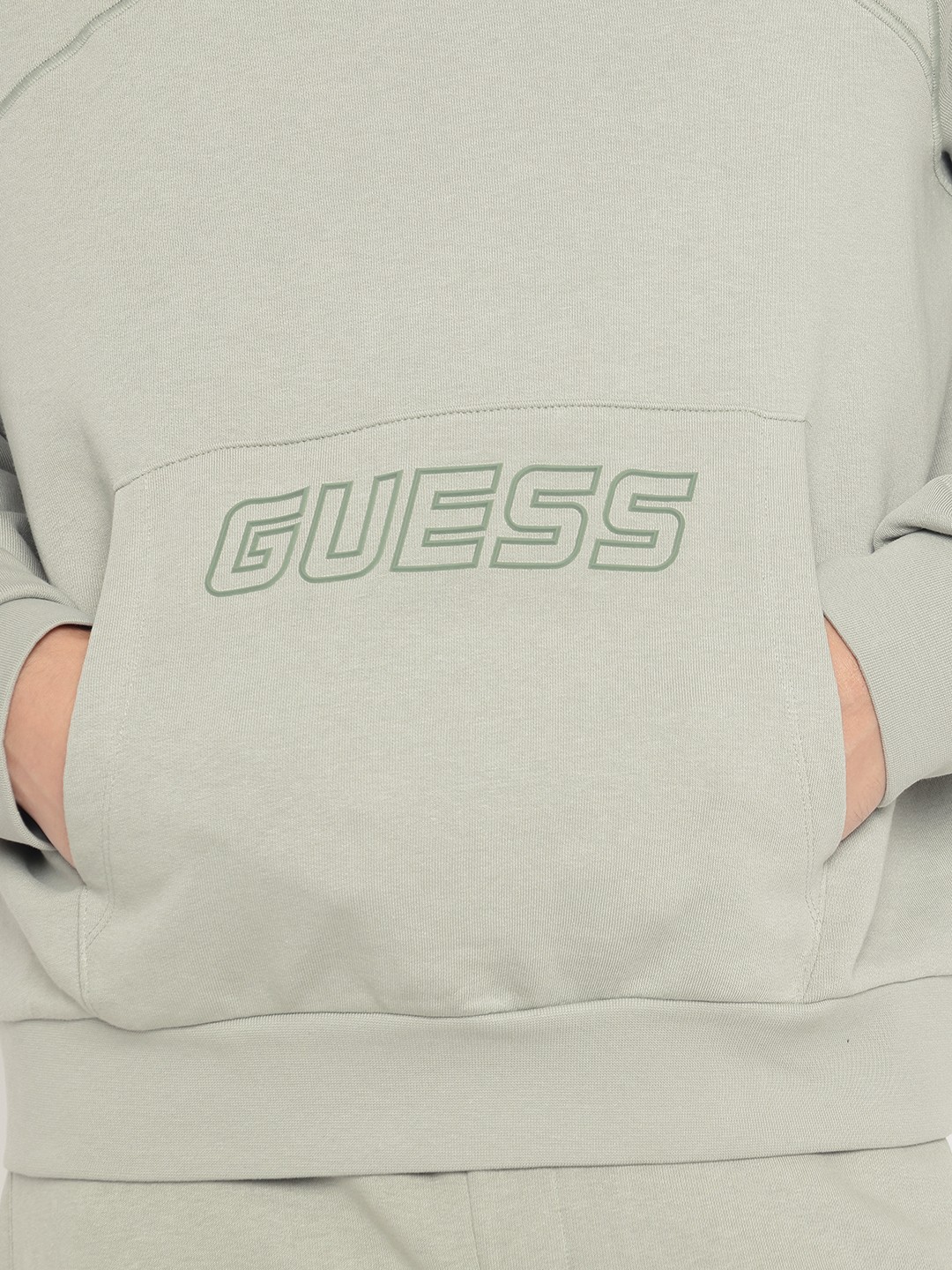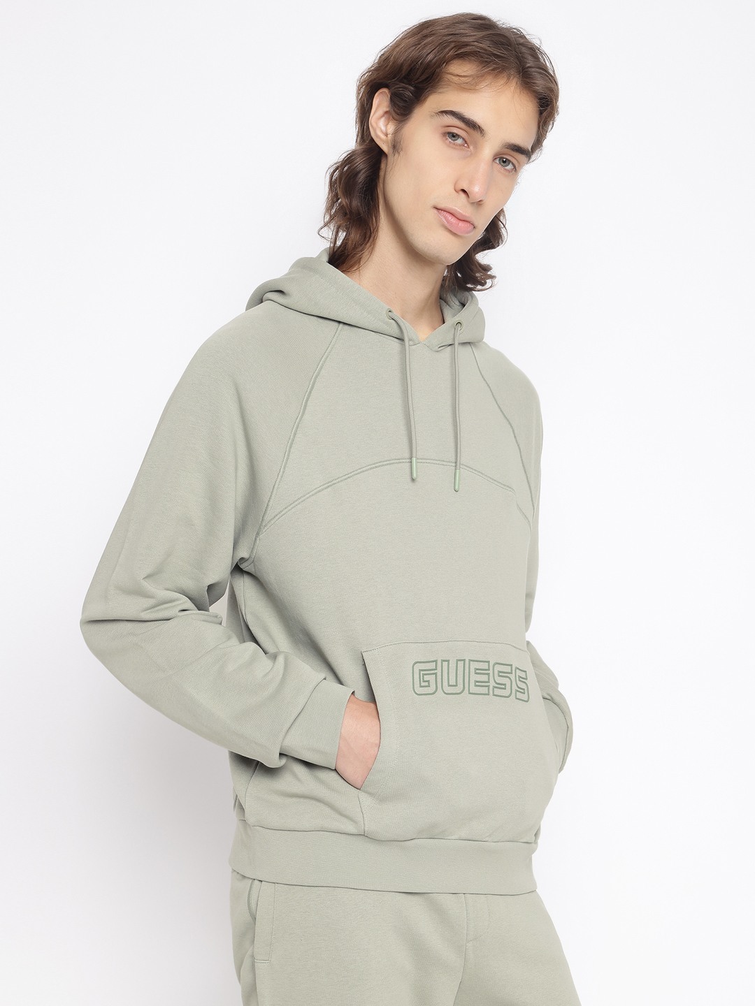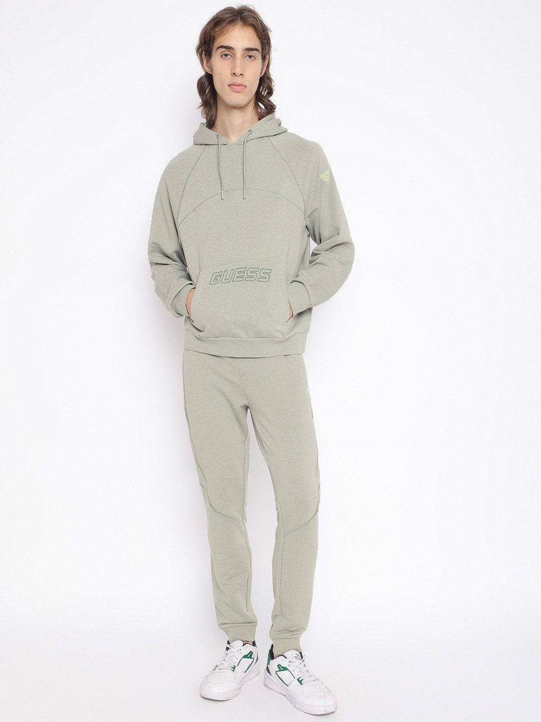 Elevate your casual wardrobe with this green sweatshirt, featuring a trendy typography pattern. Designed for men, it offers a regular fit with long sleeves and a hooded neck. Crafted from a comfortable cotton blend fabric, it ensures all-day comfort. The slip-on closure adds convenience, making it a perfect everyday choice.
