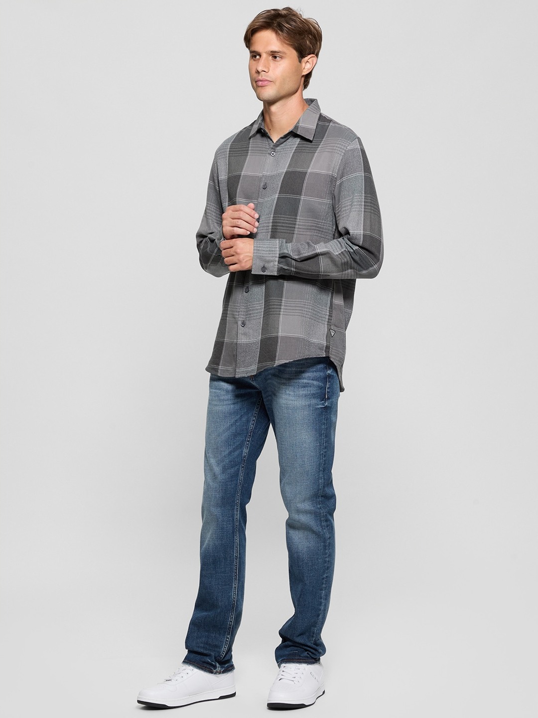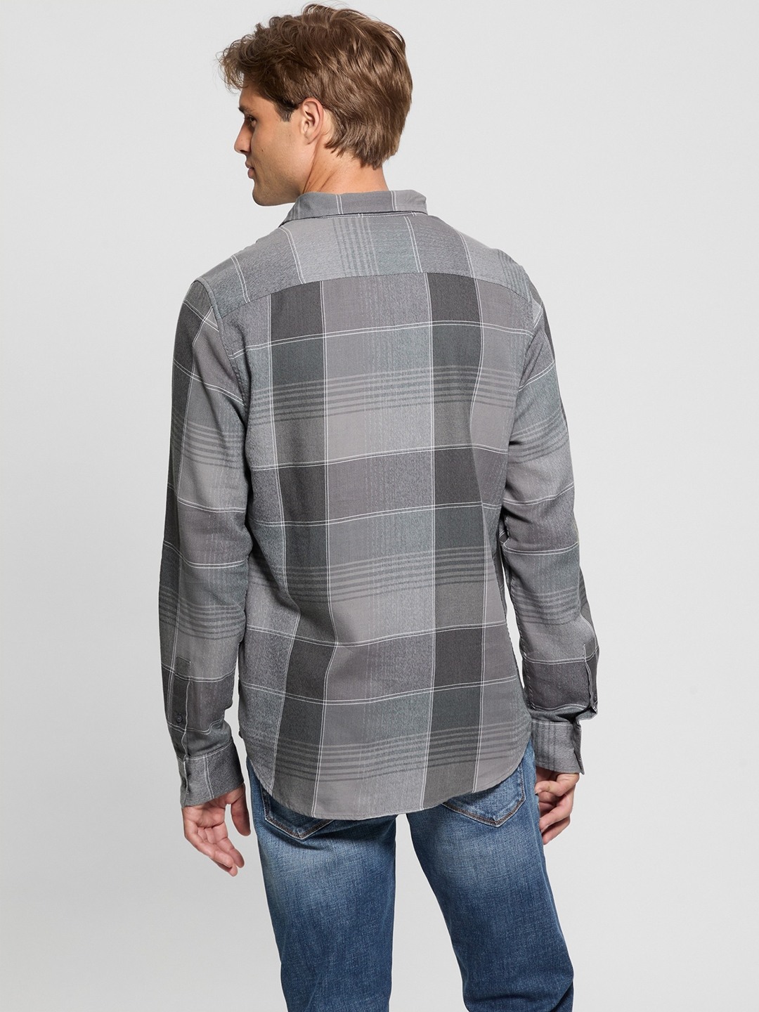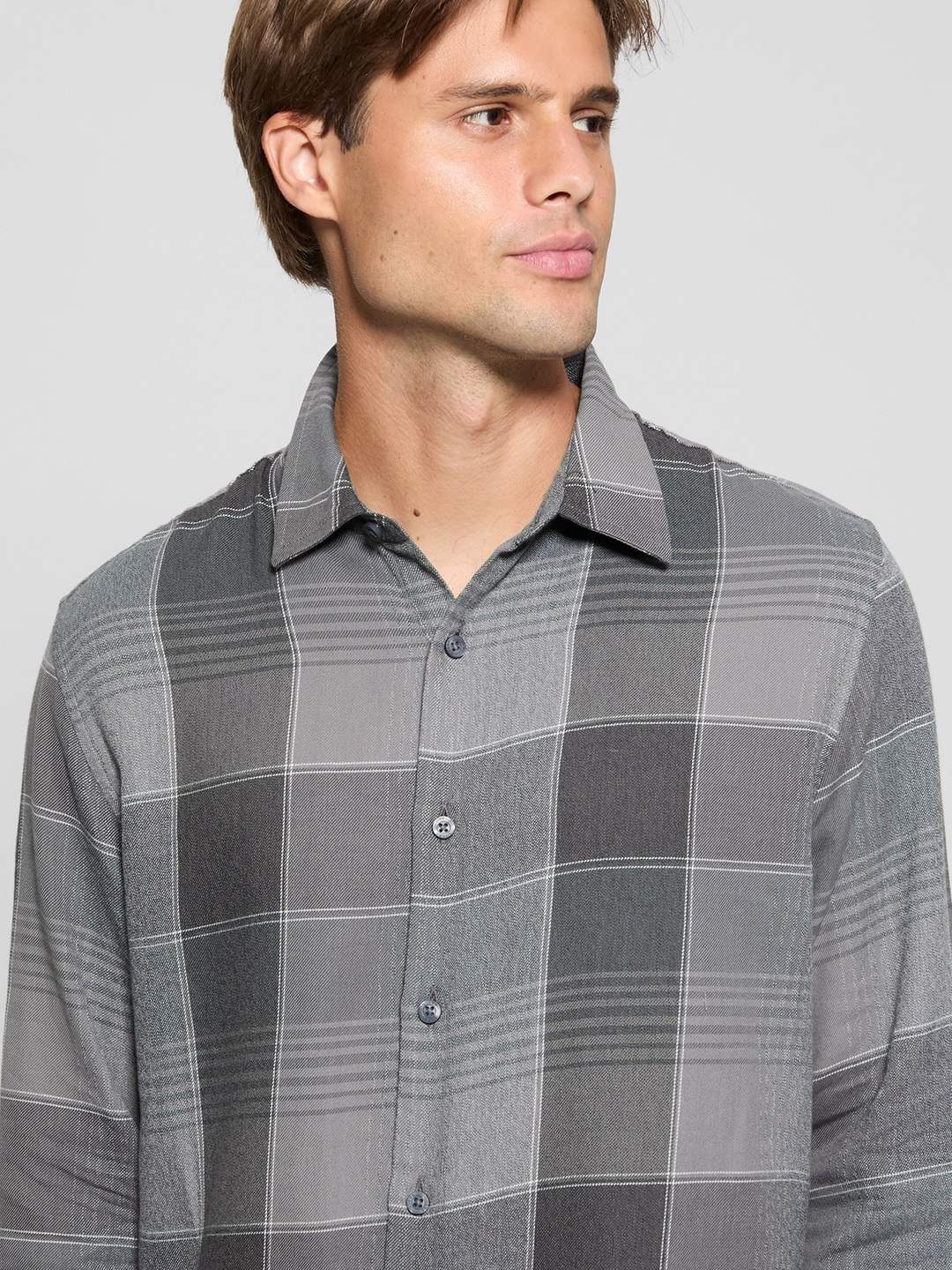 Elevate your wardrobe with this grey checked shirt, featuring a regular fit and long sleeves. Crafted from premium cotton, it offers comfort and style. The spread collar and button closure add a classic touch, making it perfect for both casual and formal occasions. Ideal for the modern man seeking timeless elegance.