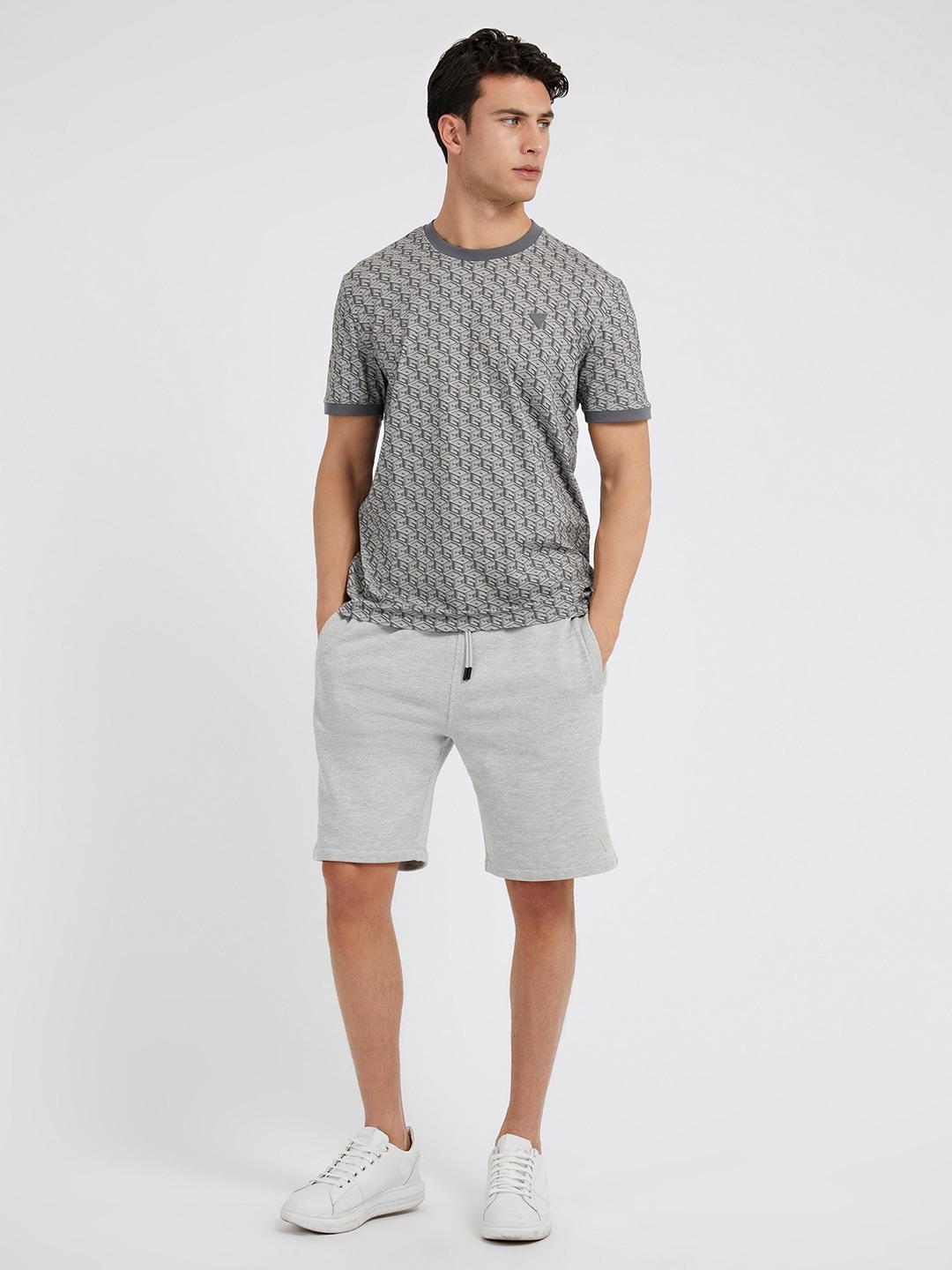 Experience ultimate comfort and style with our grey slim fit shorts for men. Crafted from a soft cotton blend, these mid-rise shorts feature a solid pattern and convenient drawstring closure. Perfect for casual outings or lounging at home, they offer a modern look with a relaxed feel.