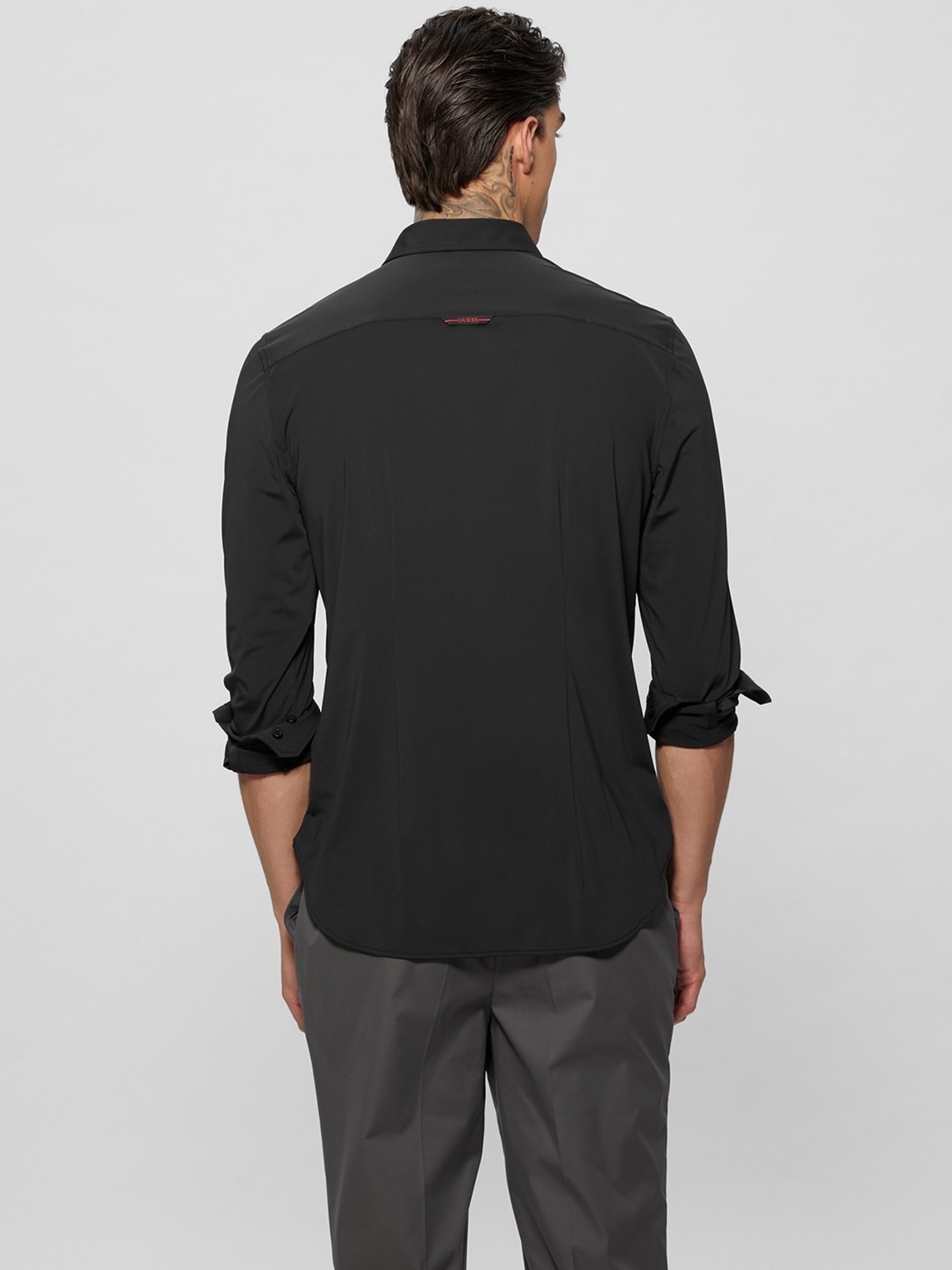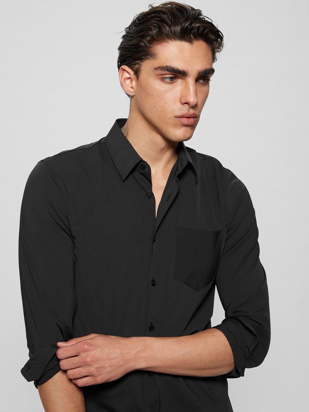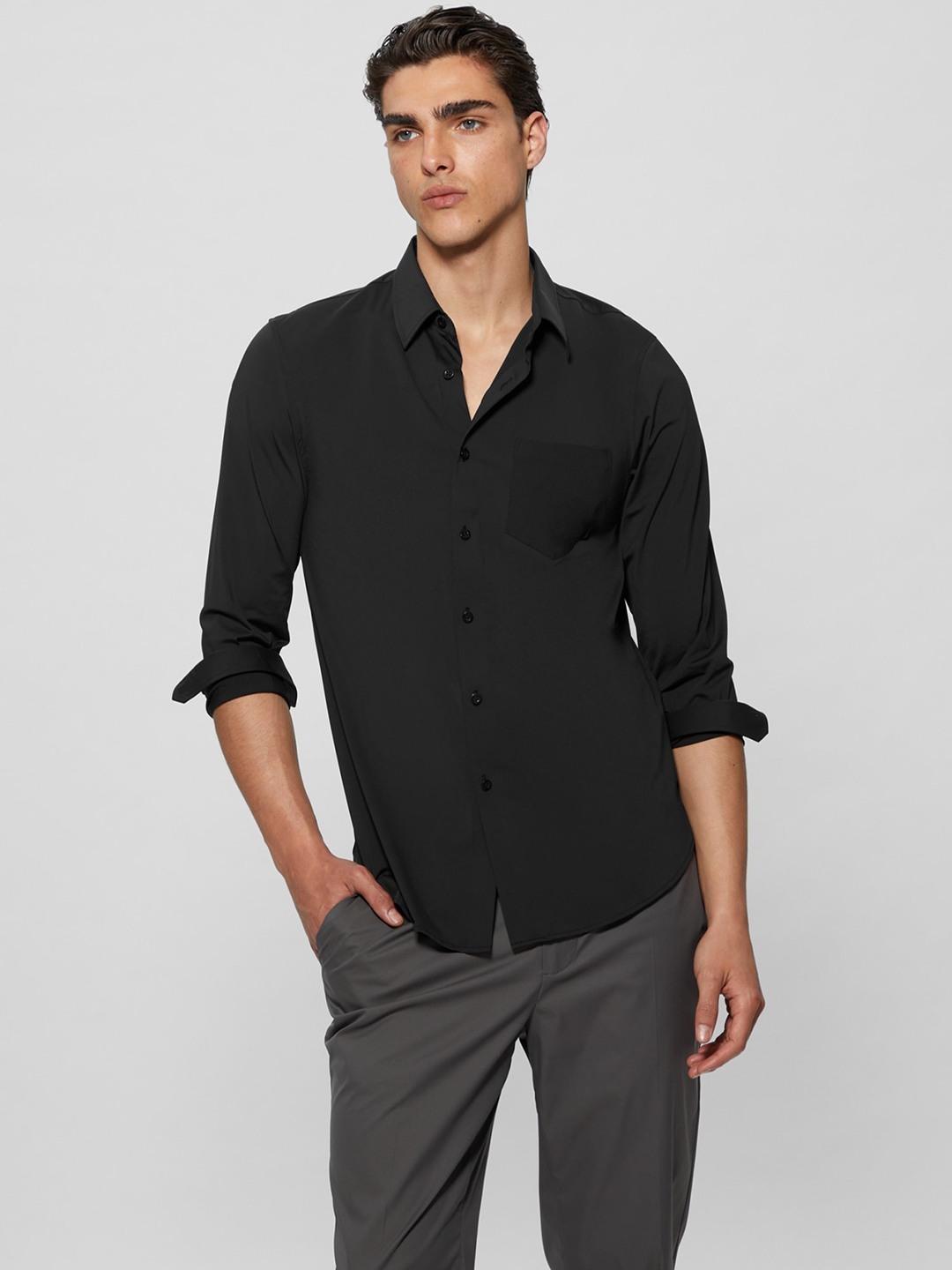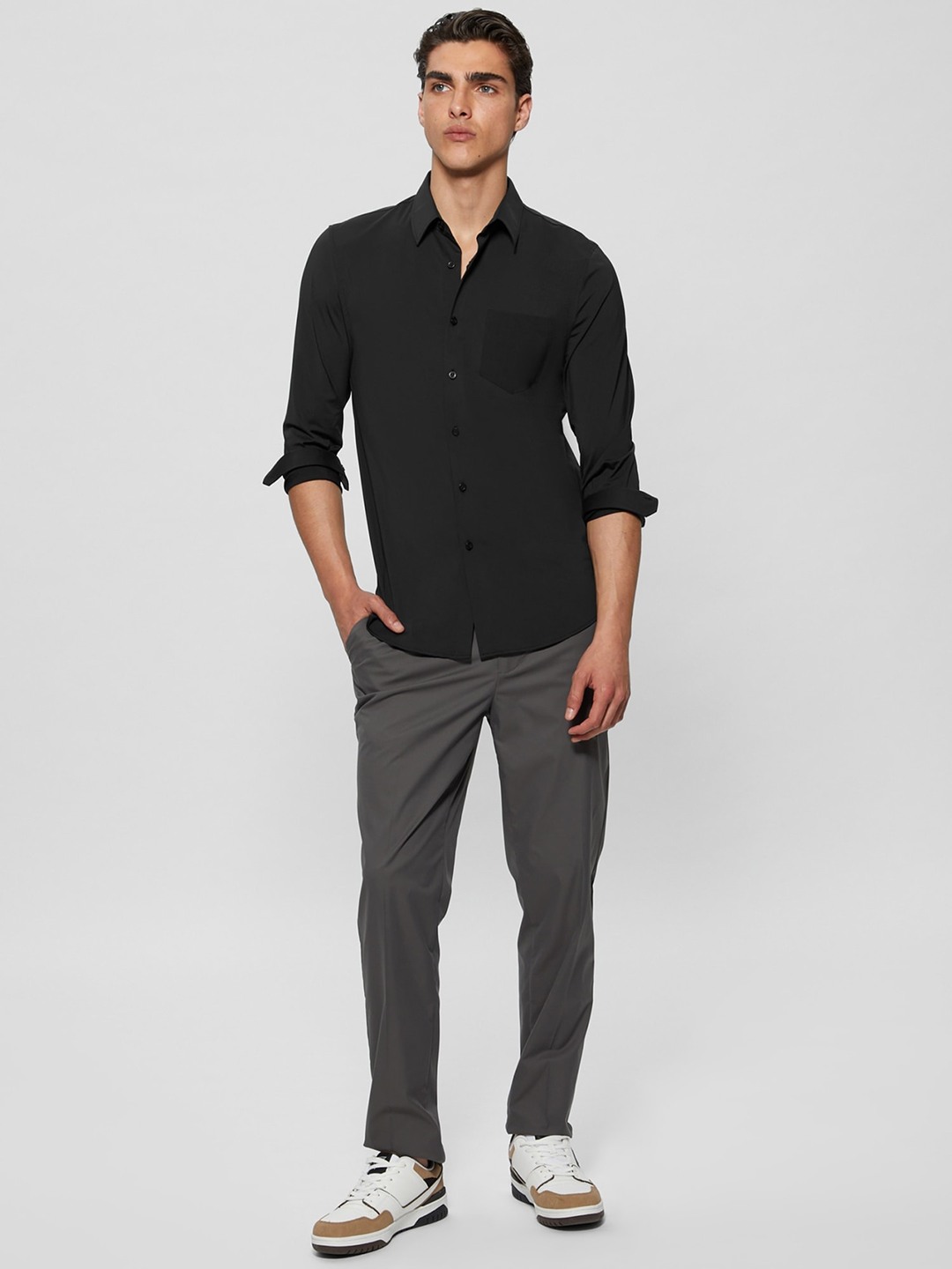 Elevate your wardrobe with our sleek black slim-fit shirt, designed for the modern man who values style and comfort. Crafted from premium polyamide fabric, this shirt offers a smooth, lightweight feel, perfect for all-day wear. The solid pattern exudes sophistication, while the full sleeves and spread collar add a touch of classic elegance. Featuring a convenient button closure, this versatile piece is ideal for both formal and casual occasions. Pair it with tailored trousers or jeans for a polished look that never goes out of style.