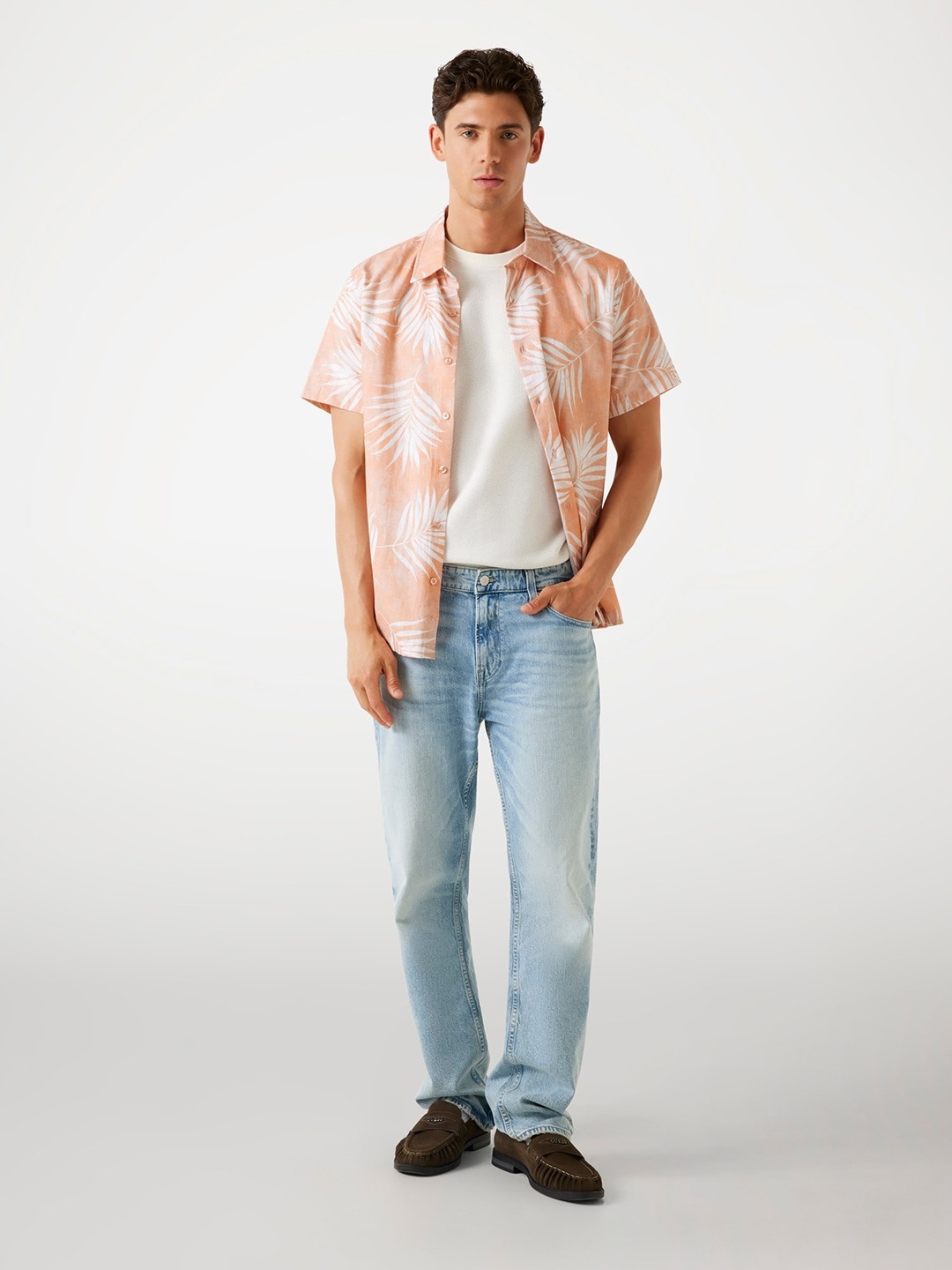 Elevate your style with our vibrant orange tropical-patterned shirt. Crafted from premium cotton, this regular-fit shirt features short sleeves and a spread collar for a relaxed yet polished look. The button closure ensures easy wear, making it perfect for sunny days and casual outings. Embrace comfort and flair with this must-have wardrobe staple.