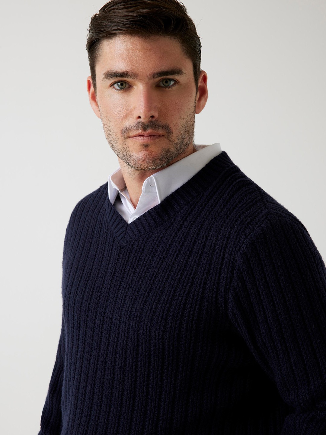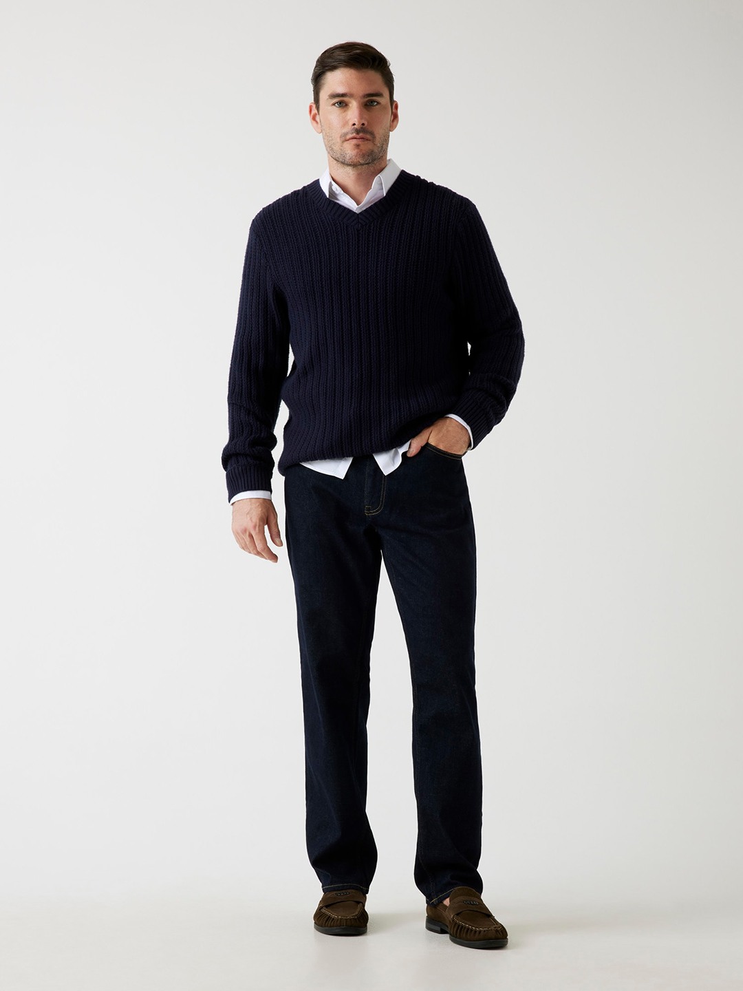 Elevate your wardrobe with our sophisticated blue sweater, designed for the modern man. Crafted from premium viscose fabric, this sweater offers a luxurious feel and exceptional comfort. The regular fit ensures a flattering silhouette, while the ribbed knit pattern adds a touch of texture and style. Featuring a classic v-neck and full sleeves, it's perfect for layering or wearing solo. The convenient pull-on closure makes it easy to wear, making it an essential addition to your collection. Ideal for any occasion, this sweater combines elegance and versatility effortlessly.