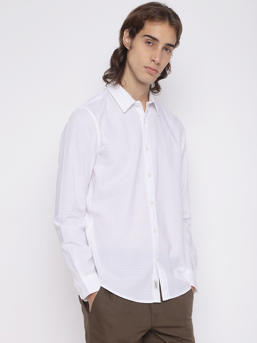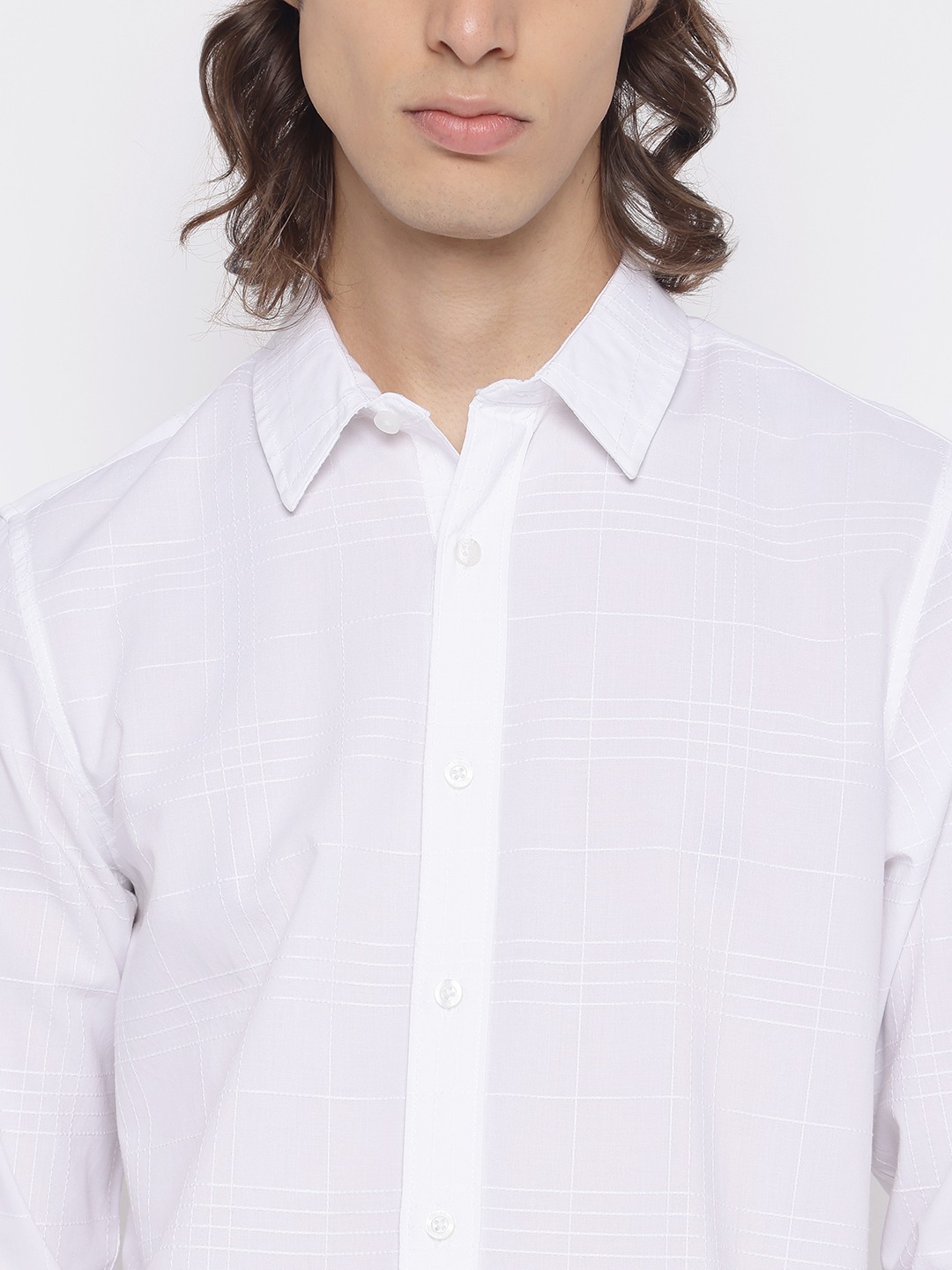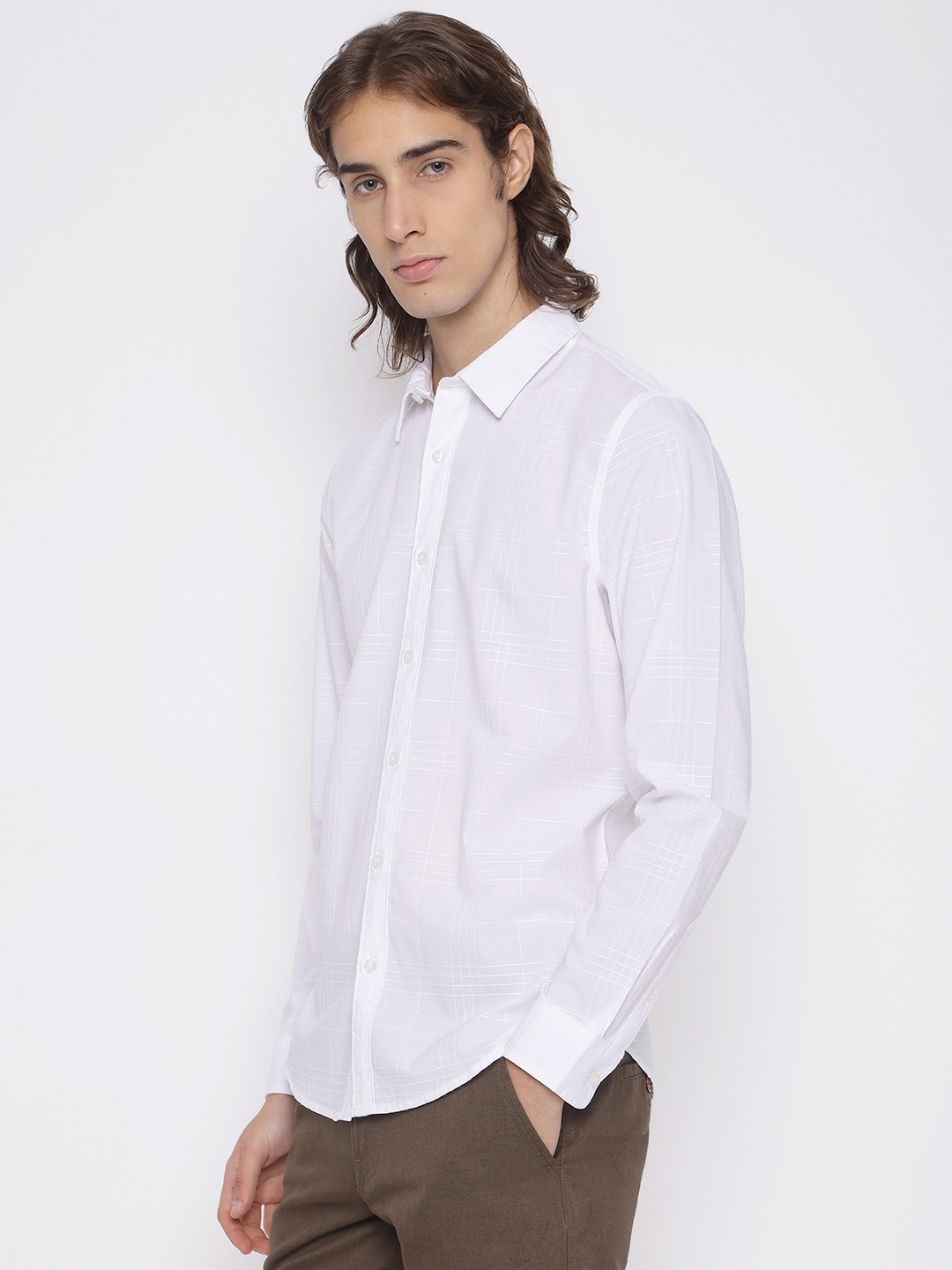 Elevate your wardrobe with this classic white checked shirt for men. Crafted from a comfortable cotton blend, it features a regular fit, long sleeves, and a spread collar. The button closure adds a touch of sophistication, making it perfect for both casual and formal occasions. A versatile must-have!
