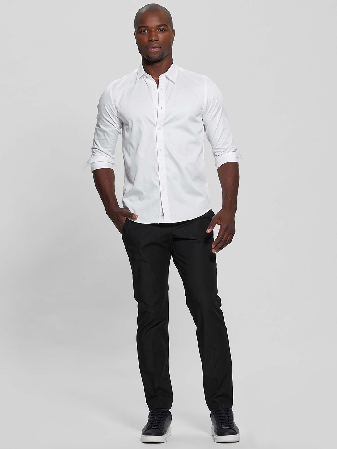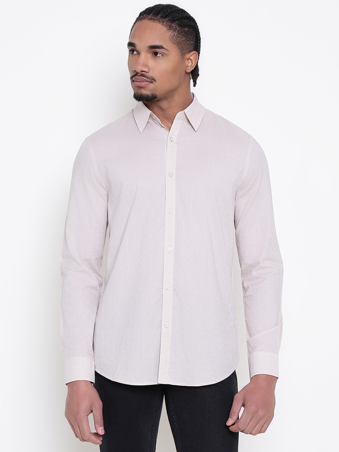 Elevate your wardrobe with this classic white shirt, featuring a regular fit and solid pattern. Crafted from premium cotton, it offers comfort and breathability. The long sleeves and spread collar add a touch of sophistication, while the button closure ensures a polished look. Perfect for both formal and casual occasions.