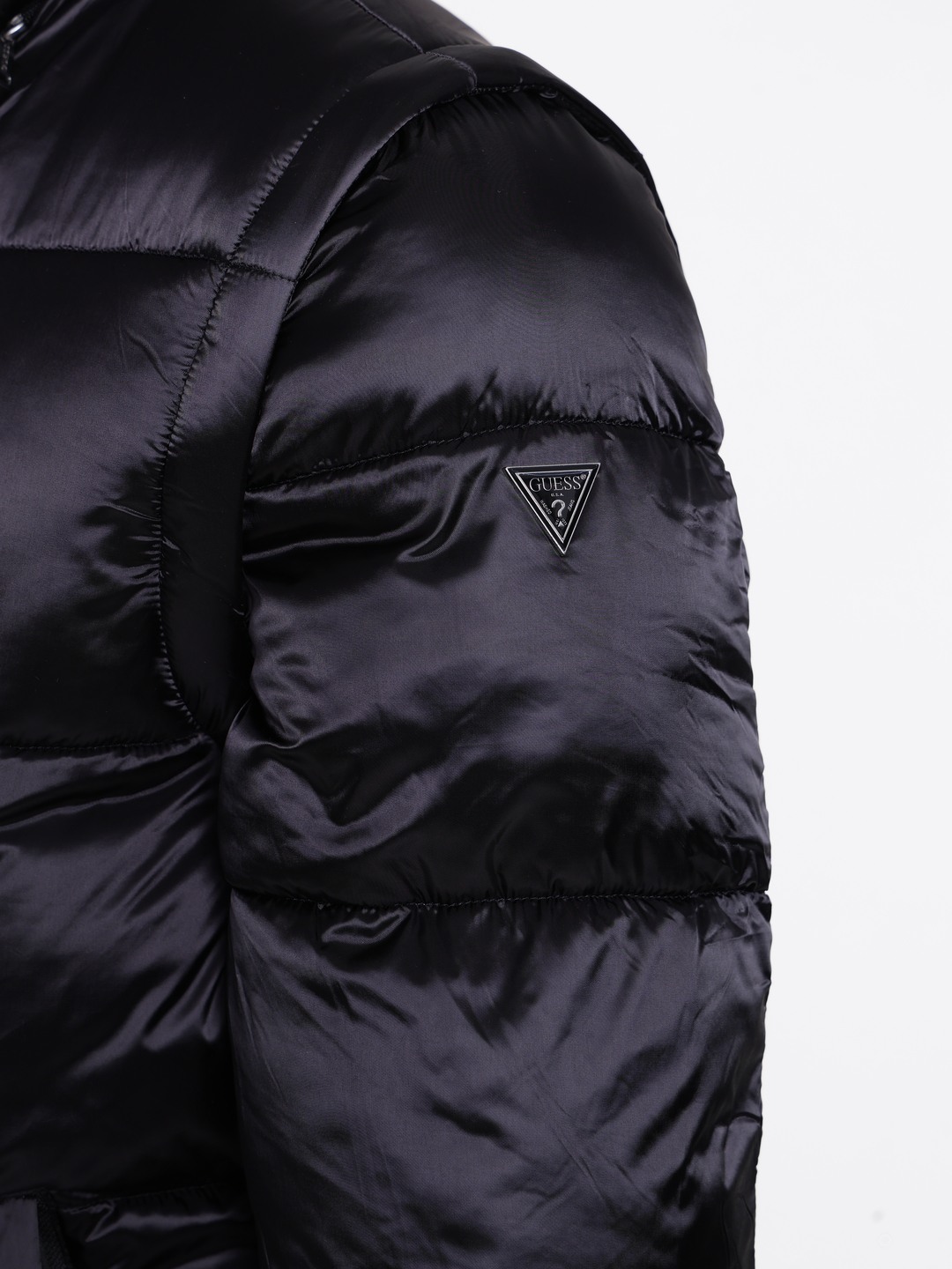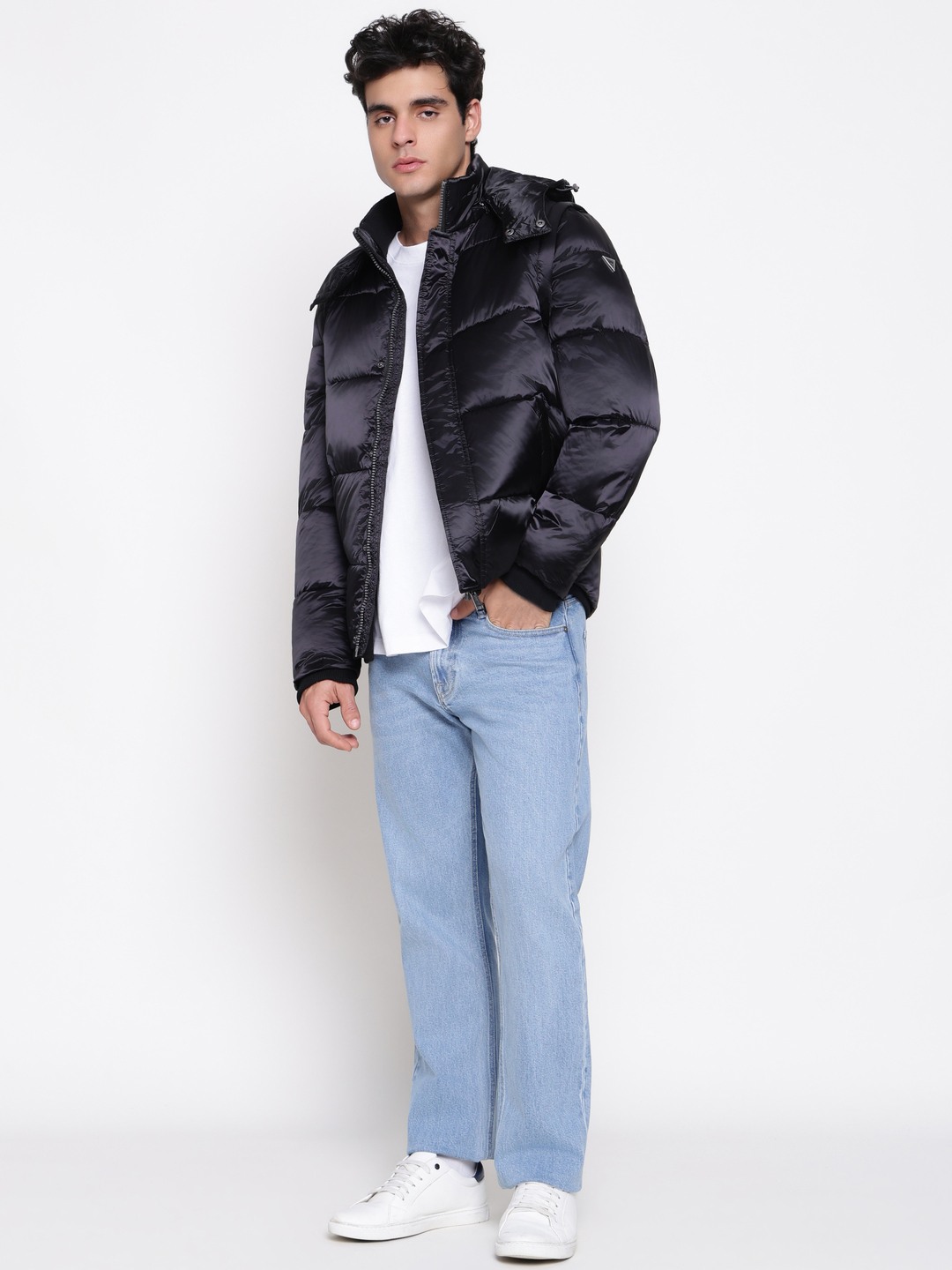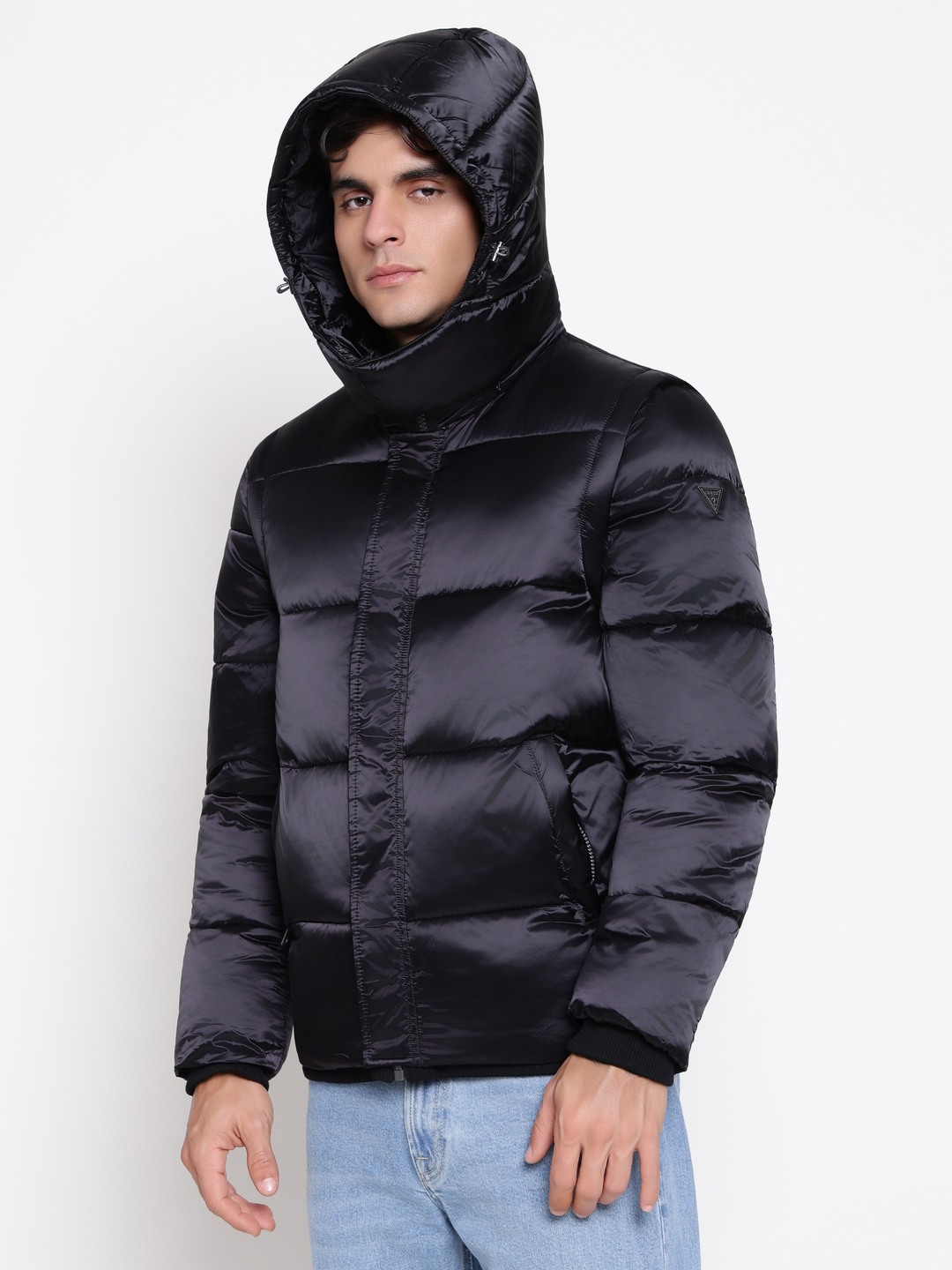 Experience style and comfort with this satin wet effect metallized puffer jacket in black. Designed for men, it features a regular fit and solid pattern, making it versatile for various occasions. The full sleeves and hooded neck provide added warmth and protection against the elements. Crafted from durable polyamide fabric, it offers a sleek look with a zipper closure for easy wear. Perfect for those who want to make a statement while staying cozy, this jacket combines fashion and functionality effortlessly.