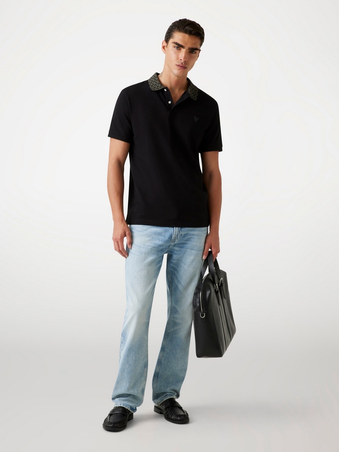 Elevate your wardrobe with our sleek black polo t-shirt, designed for the modern man who values style and comfort. This slim-fit polo features a timeless solid pattern, perfect for any occasion. Crafted from a premium cotton blend fabric, it offers breathability and a soft touch against the skin. The classic polo collar and short sleeves provide a refined look, while the button closure adds a touch of sophistication. Ideal for both casual outings and smart-casual events, this versatile piece is a must-have staple.
