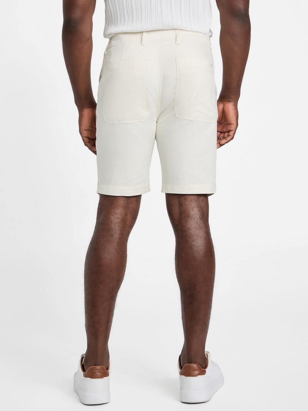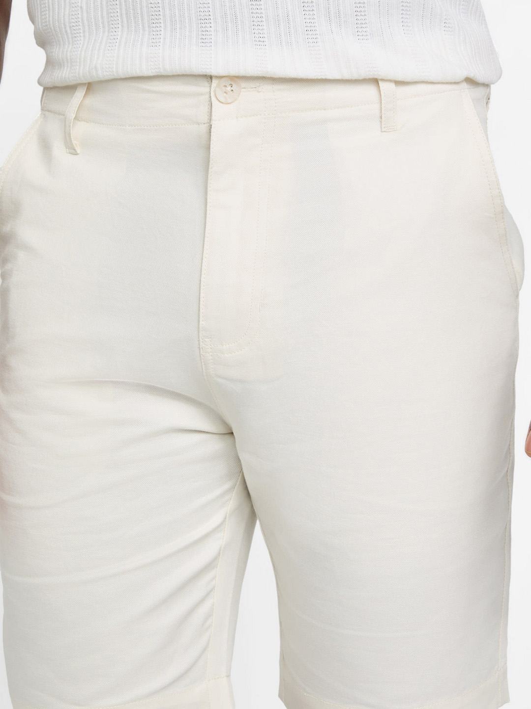 Discover the perfect blend of style and comfort with our off-white shorts for men. Crafted from a premium linen blend fabric, these shorts offer a breathable and lightweight feel, ideal for warm weather. The solid pattern provides a versatile look that pairs effortlessly with any top. Featuring a mid-rise design, these shorts ensure a flattering fit, while the button and zip fly closure adds a touch of classic sophistication. Whether for a casual outing or a relaxed day at home, these shorts are a must-have addition to your wardrobe.