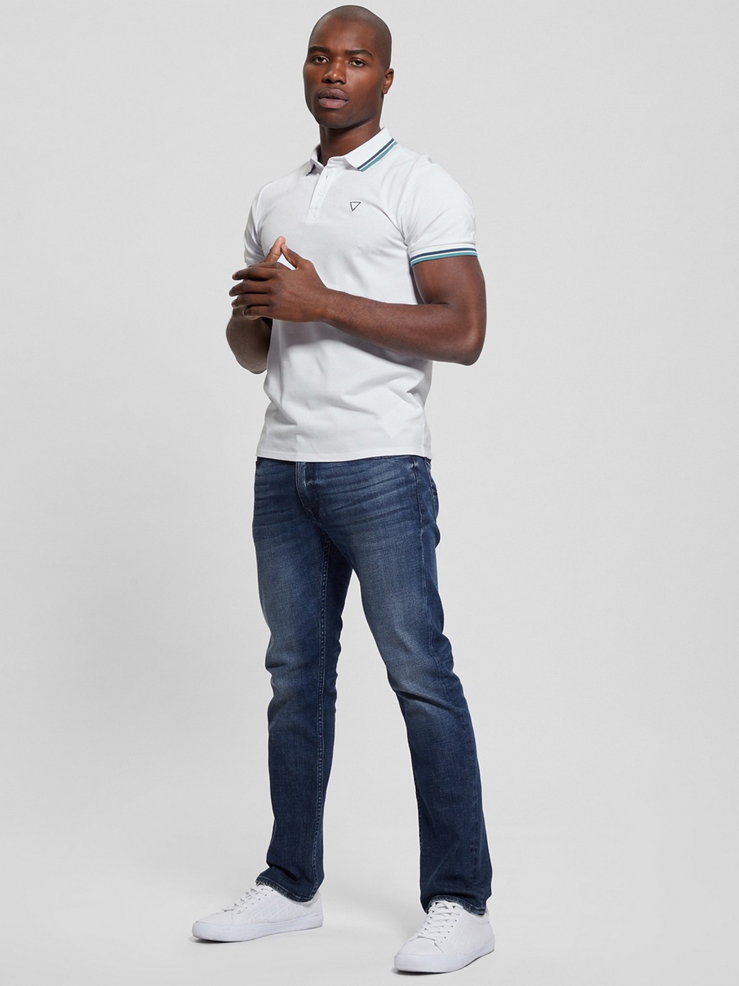 Guess Men Solid Polo Collar Short Sleeves Polo T-Shirt