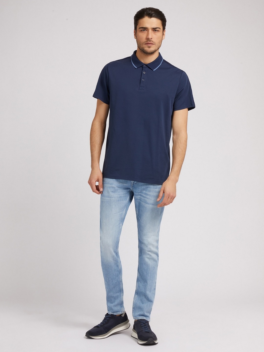 Guess Men Solid Polo Collar Short Sleeves Polo T-Shirt