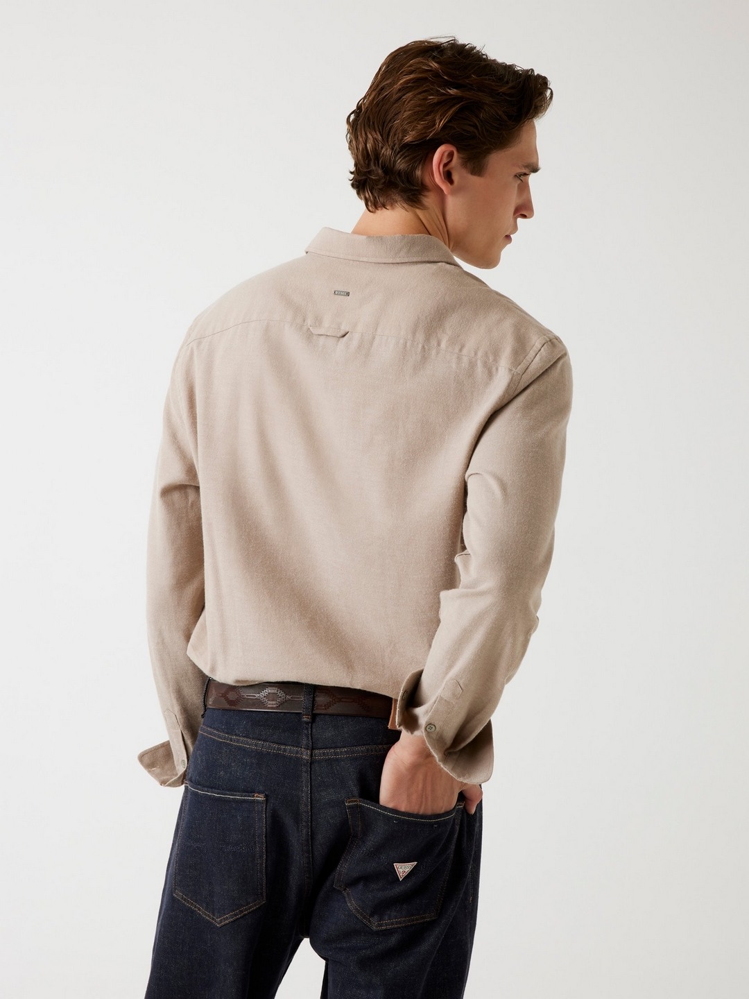 Elevate your wardrobe with our classic beige shirt, designed for the modern man who values both style and comfort. This regular-fit shirt features a timeless solid pattern, making it a versatile addition to any outfit. Crafted from premium cotton fabric, it ensures breathability and softness for all-day wear. The long sleeves and spread collar add a touch of sophistication, while the button closure provides a secure fit. Perfect for both casual and formal occasions, this shirt is a must-have staple for every man's closet.