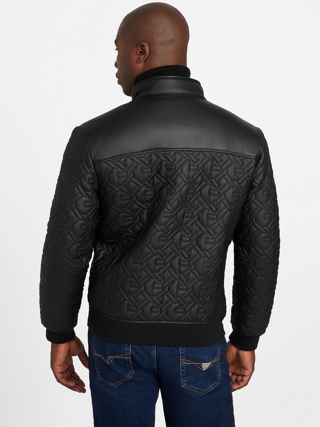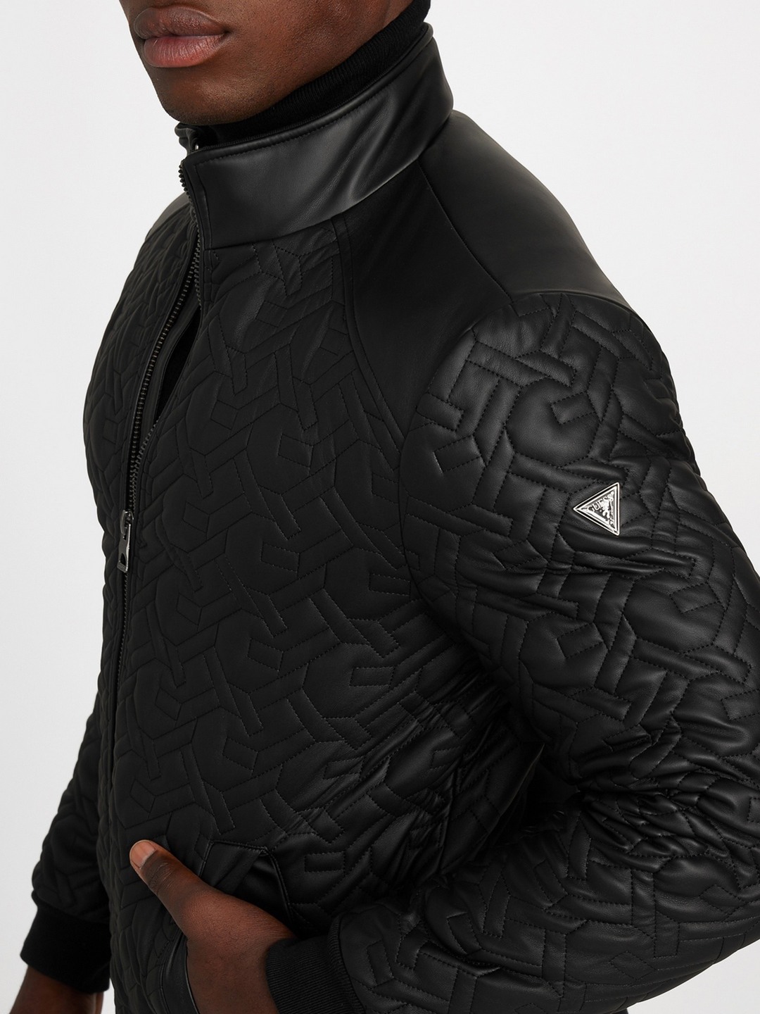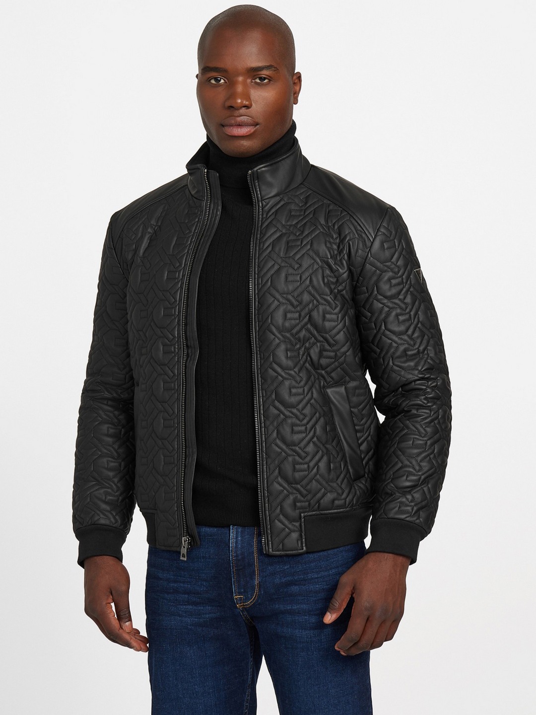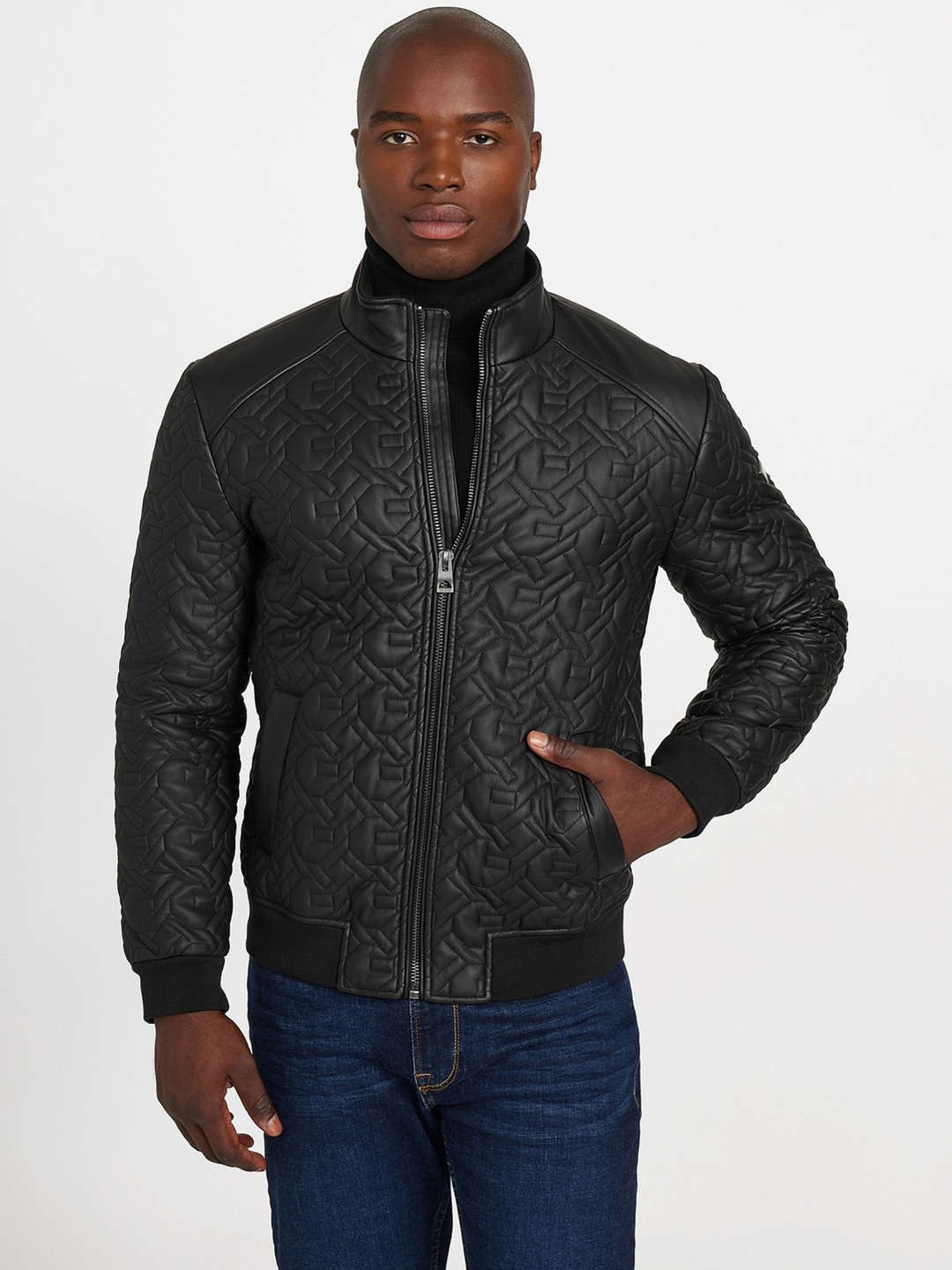 Elevate your outerwear collection with our Quilted Jacket in sleek black, designed for the modern man. This regular-fit jacket features a distinctive quilted logo pattern that adds a touch of sophistication to any ensemble. Crafted from durable polyurethane fabric, it offers both style and functionality. The long sleeves and stand collar provide extra warmth, while the zip closure ensures a secure fit. Perfect for transitional weather, this jacket effortlessly combines comfort and contemporary design for a polished look.