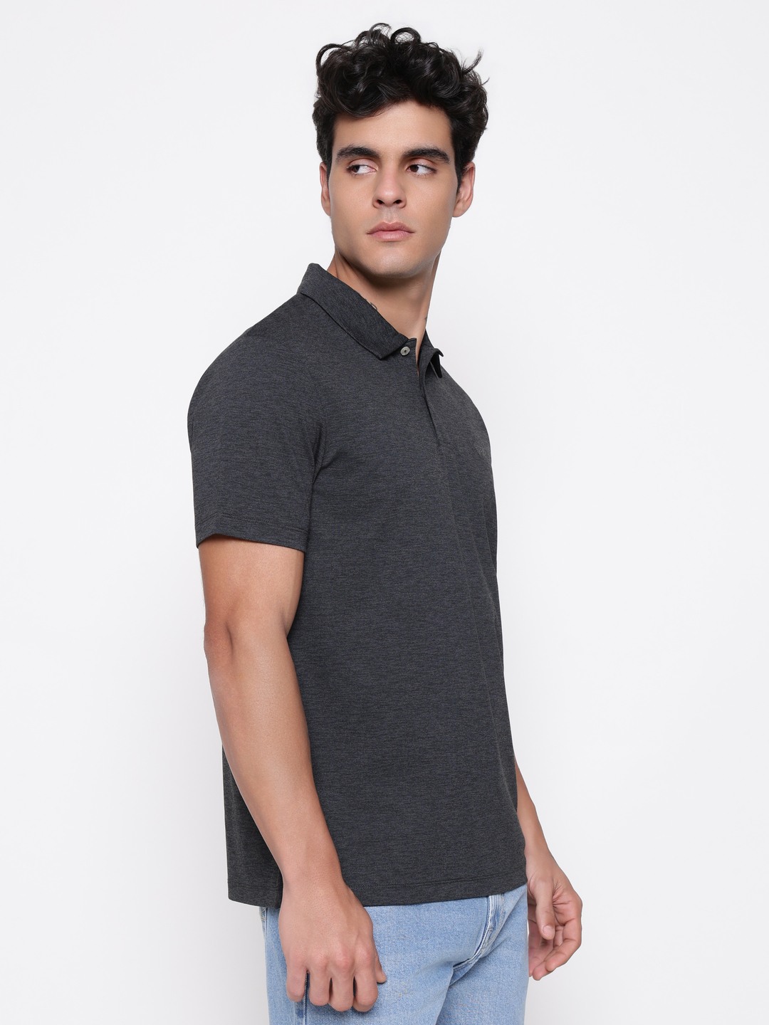 Discover the tech ponte diagonal t-shirt in charcoal, designed for modern men seeking comfort and style. This regular fit shirt features a solid pattern with a sleek polo neck and short sleeves, perfect for casual or semi-formal occasions. Crafted from durable polyester fabric, it offers a soft feel and easy maintenance. The button closure adds a touch of sophistication, making it versatile for various looks. Elevate your wardrobe with this stylish and comfortable t-shirt that combines functionality with contemporary design.