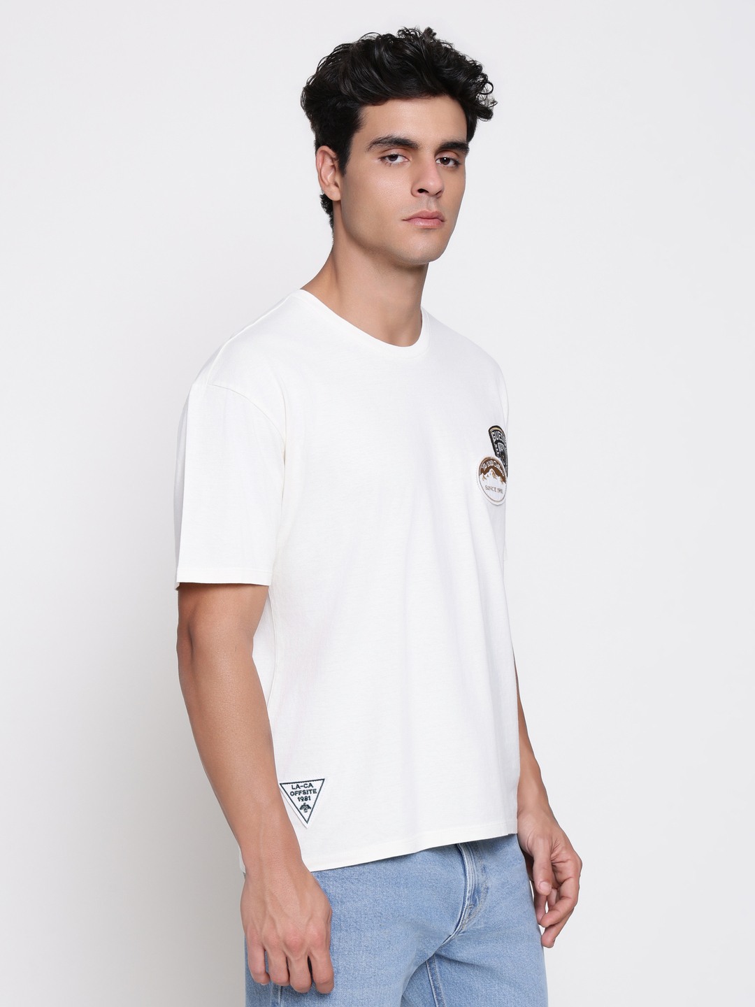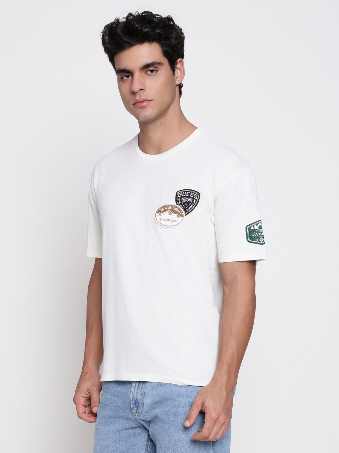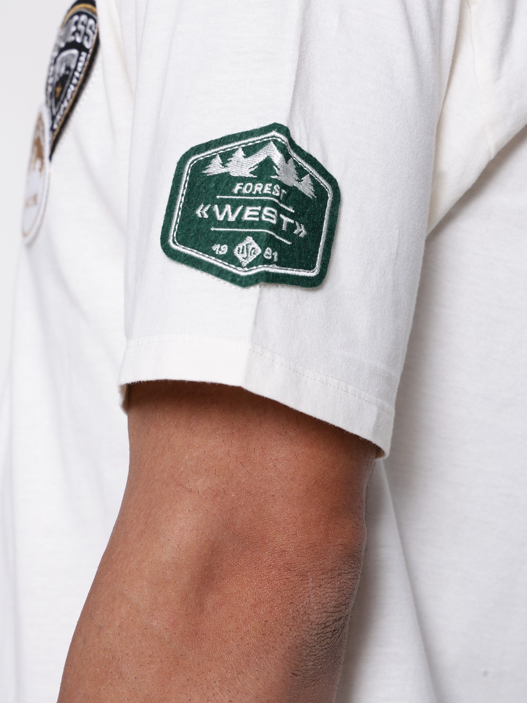 The woods organic cotton t-shirt for men offers a comfortable and stylish option for everyday wear. Crafted from pure cotton fabric, it features a cream color with a badge pattern that adds a subtle touch of design. The regular fit ensures ease of movement, while the short sleeves and round neck provide a classic look. Designed with a pull-on closure, this t-shirt is easy to wear and maintain. Perfect for casual outings, it combines eco-friendly materials with timeless style for a versatile wardrobe essential.