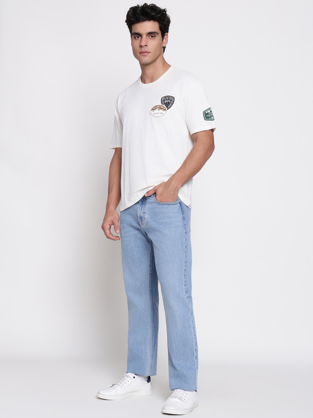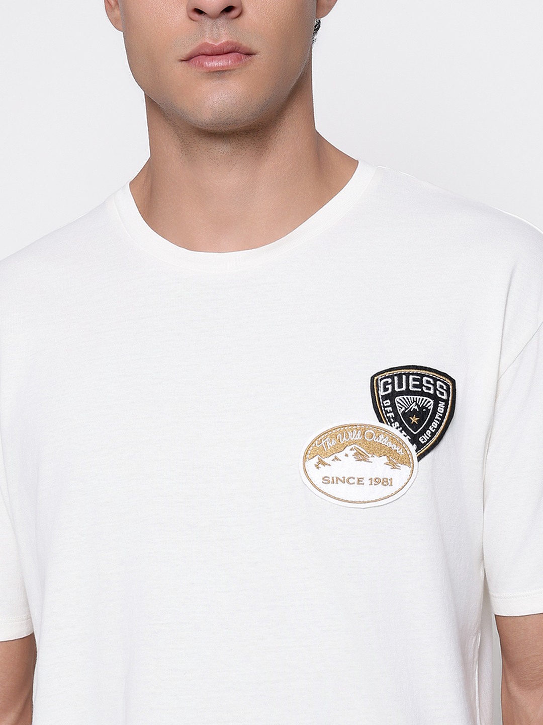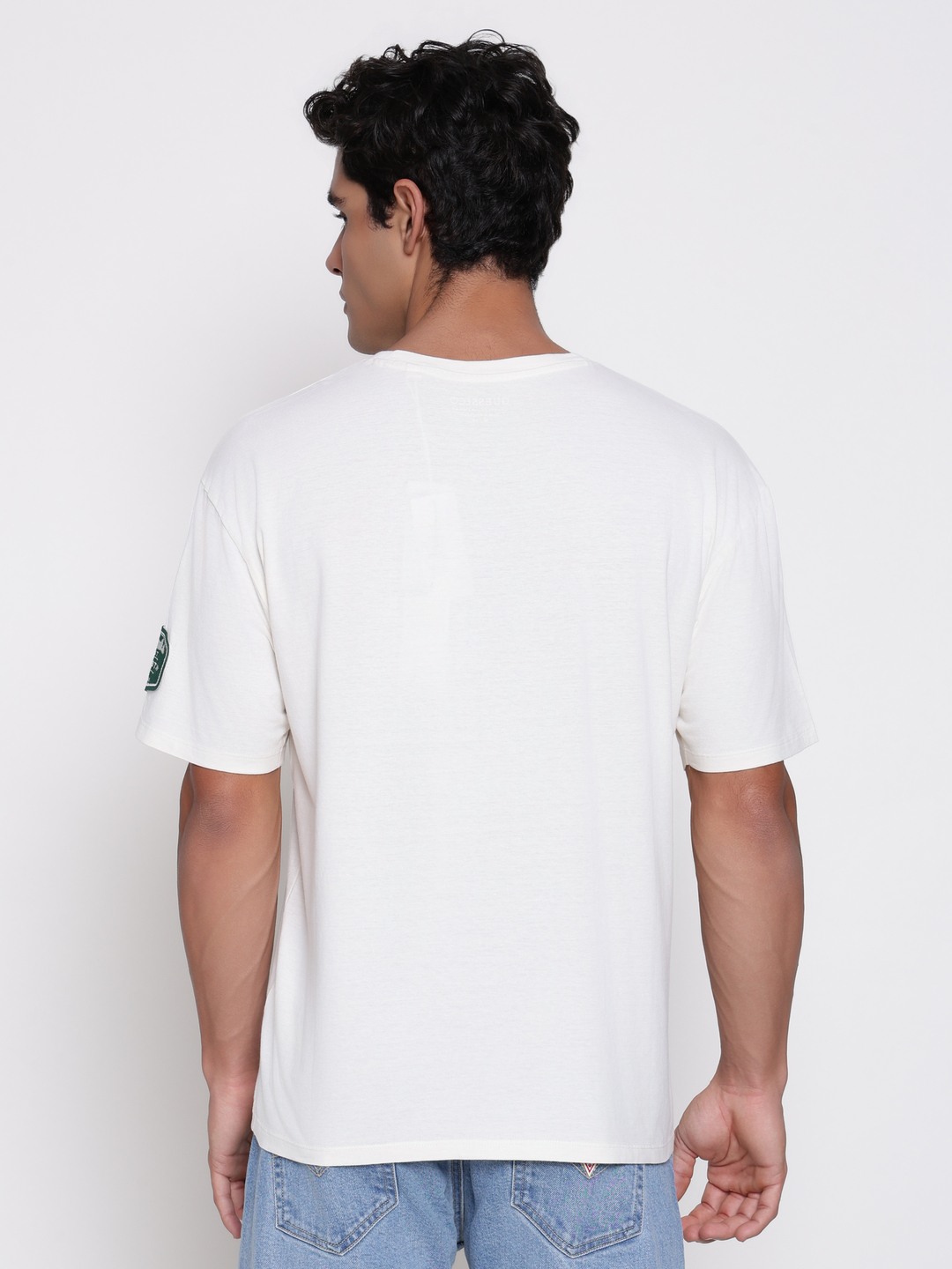 The woods organic cotton t-shirt for men offers a comfortable and stylish option for everyday wear. Crafted from pure cotton fabric, it features a cream color with a badge pattern that adds a subtle touch of design. The regular fit ensures ease of movement, while the short sleeves and round neck provide a classic look. Designed with a pull-on closure, this t-shirt is easy to wear and maintain. Perfect for casual outings, it combines eco-friendly materials with timeless style for a versatile wardrobe essential.