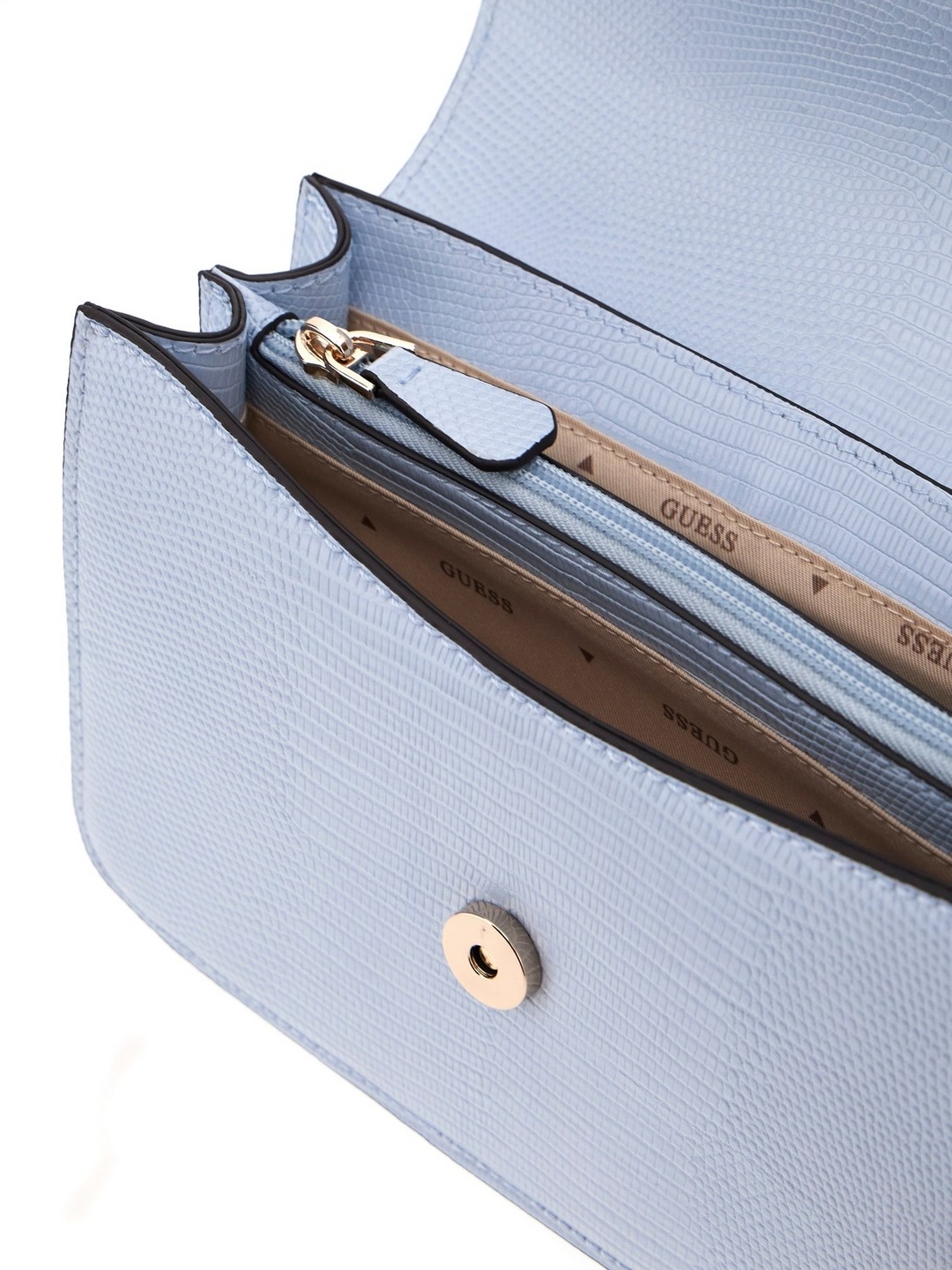 Guess Misty Blue Textured Salinge Flap Crossbody Bag