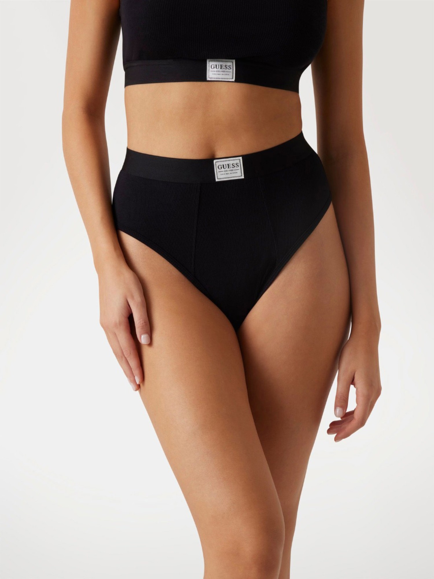 Introducing the Guess Modal Solid Black Tessa High Waist Brazilian Brief - a must-have for those who crave comfort and style. Crafted from soft modal fabric, these briefs provide a luxurious feel against the skin while the high waist design offers a flattering fit. The Brazilian cut adds a touch of allure, making you feel confident and empowered. Whether you're lounging at home or stepping out for a night on the town, these briefs are the perfect blend of comfort and sophistication. Elevate your lingerie collection with the Guess Modal Solid Black Tessa High Waist Brazilian Brief.