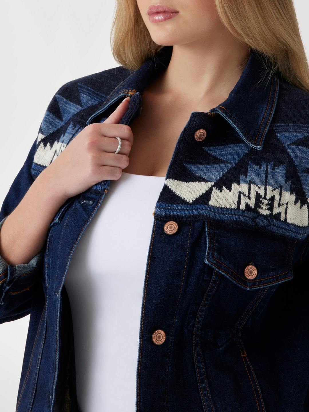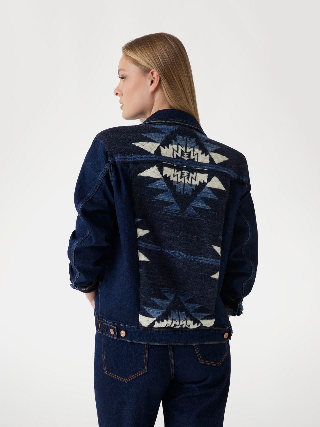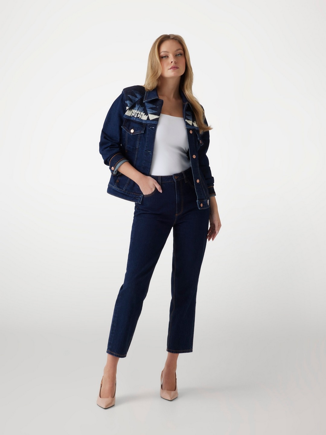 Elevate your style with this chic blue denim jacket, featuring a regular self-design pattern. Crafted from a comfortable cotton-polyester blend, it offers long sleeves and a classic collar neck. The button closure adds a timeless touch, making it a versatile wardrobe staple for women seeking both comfort and fashion-forward flair.
