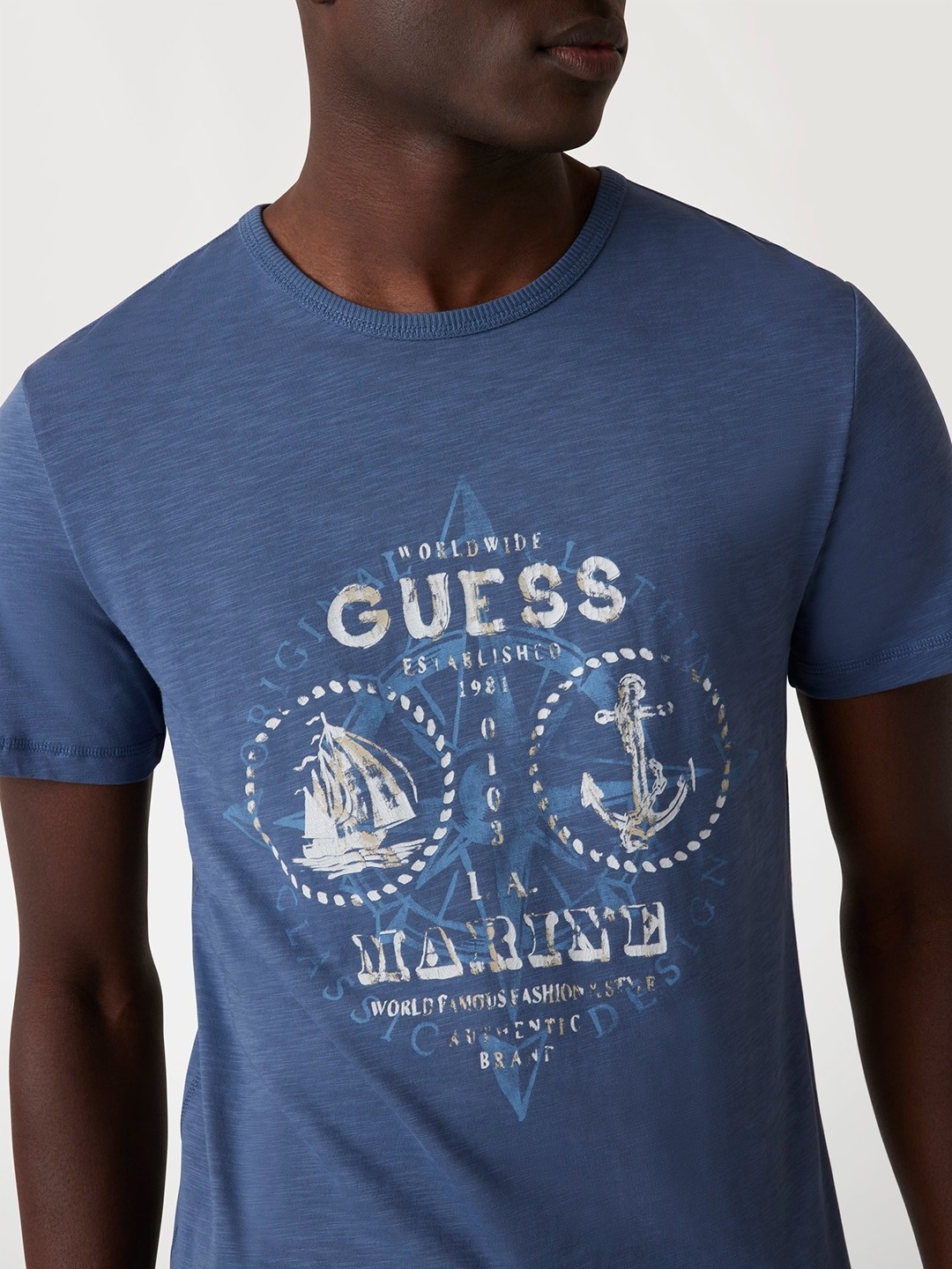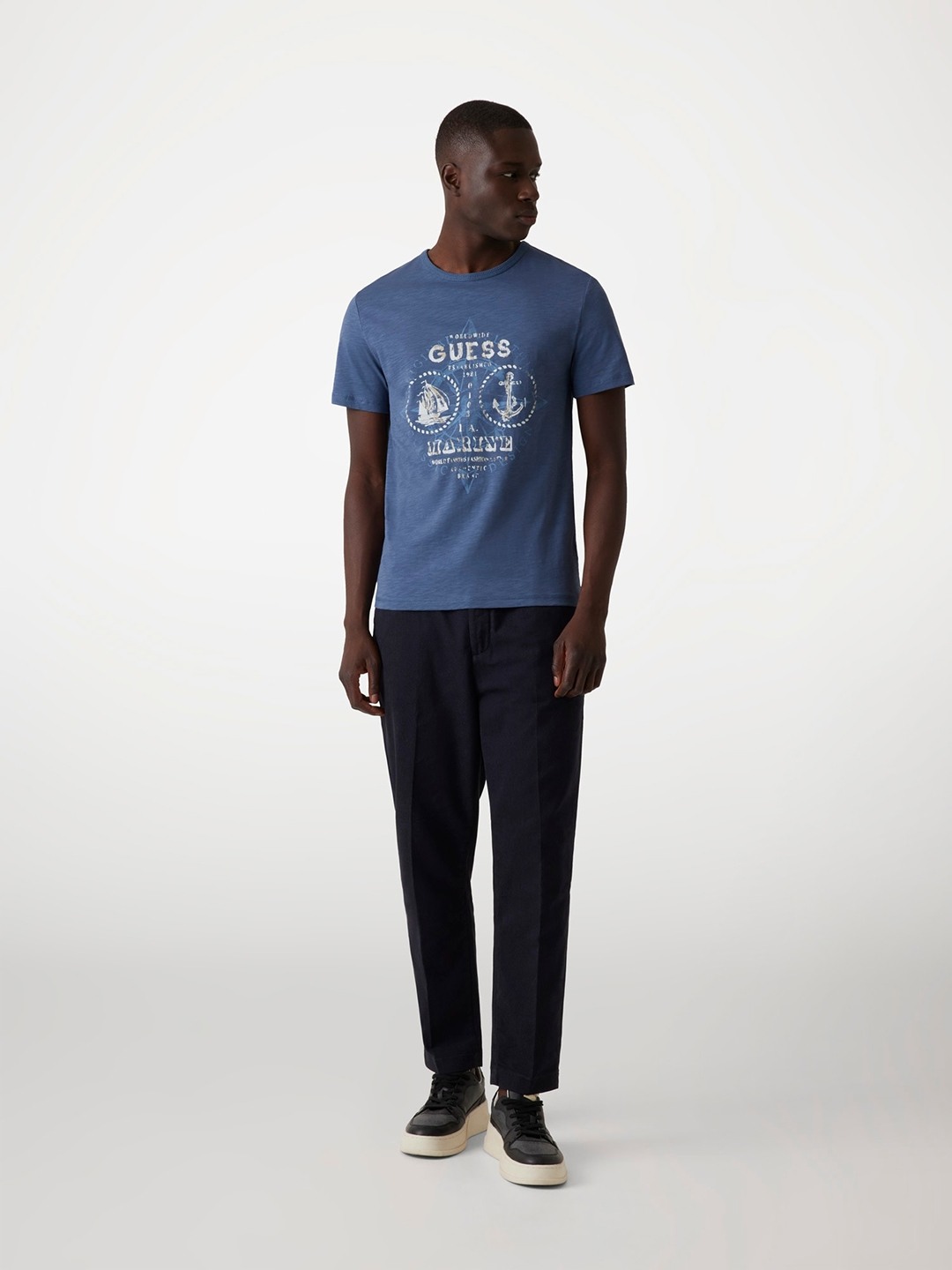 Elevate your style with our blue slim-fit T-shirt, featuring a striking graphic pattern. Crafted from premium cotton, it offers ultimate comfort and breathability. The short sleeves and classic crew neck design make it perfect for any casual occasion. Easy slip-on closure ensures a hassle-free experience. Ideal for the modern man.