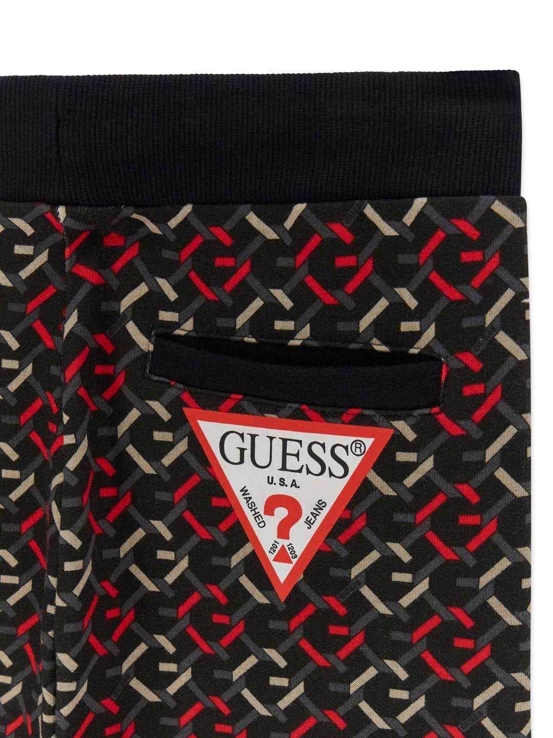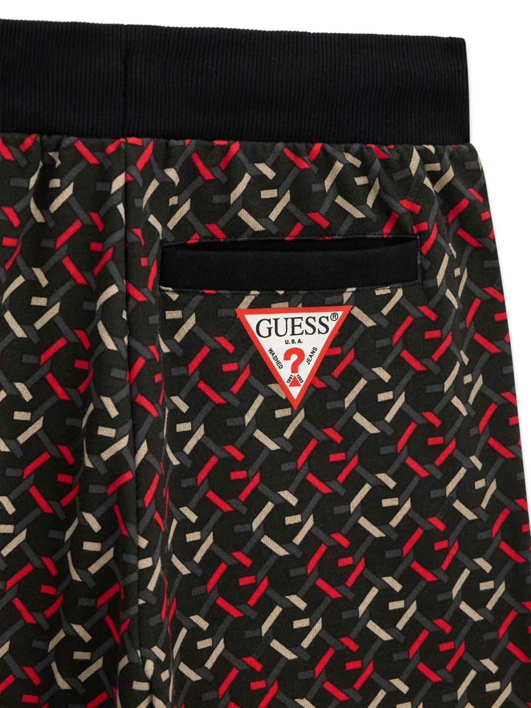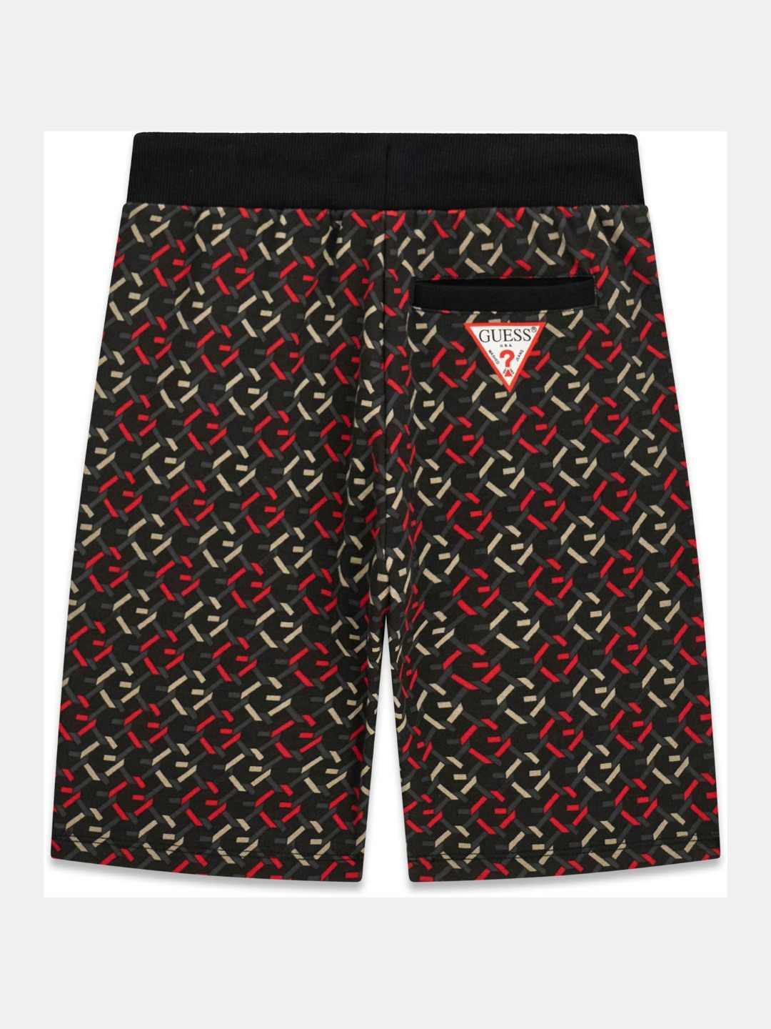 Bring a vibrant touch to his casual wardrobe with the Guess Multi Cotton Printed Boys Short. Expertly crafted from soft, breathable cotton jersey, these comfortable shorts feature an eye-catching all-over multi-colored logo and abstract pattern. Designed for an active lifestyle, they include a stretchy elasticated waistband with an adjustable drawstring for the perfect fit. Complete with handy side pockets and the iconic triangle logo on the back, these stylish shorts blend modern flair with everyday practicality for the unstoppable boy.