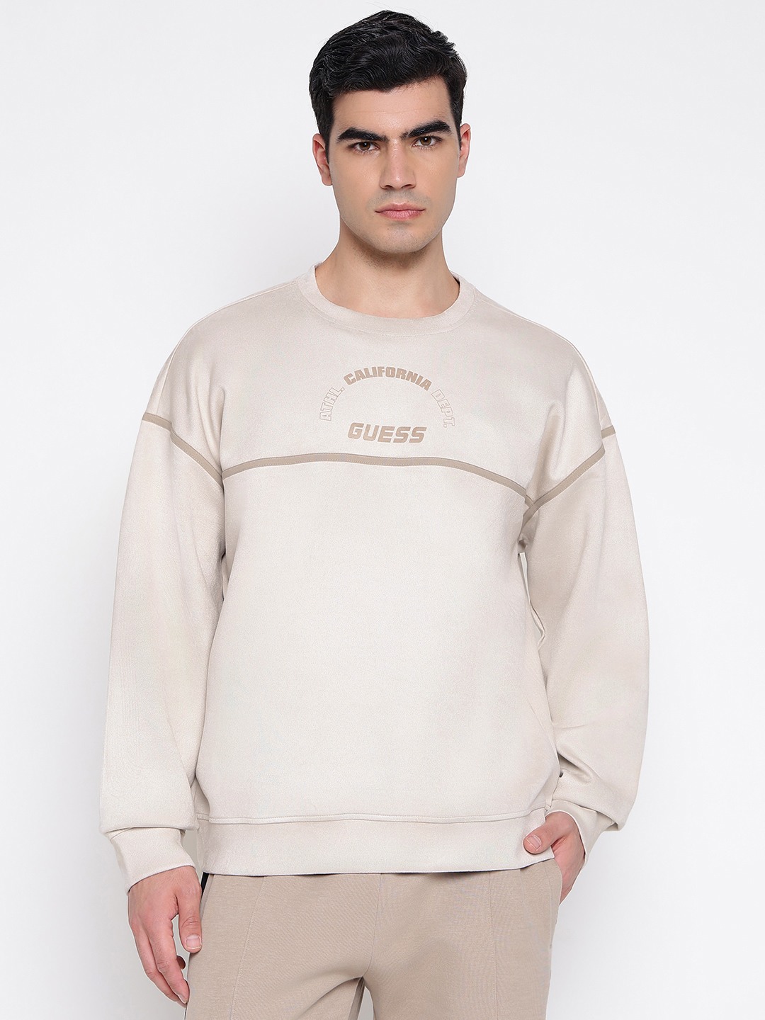 • Cozy up in style with Guess sweatshirts, featuring iconic logos, bold prints, and premium fabrics for a comfortable and effortlessly chic look.