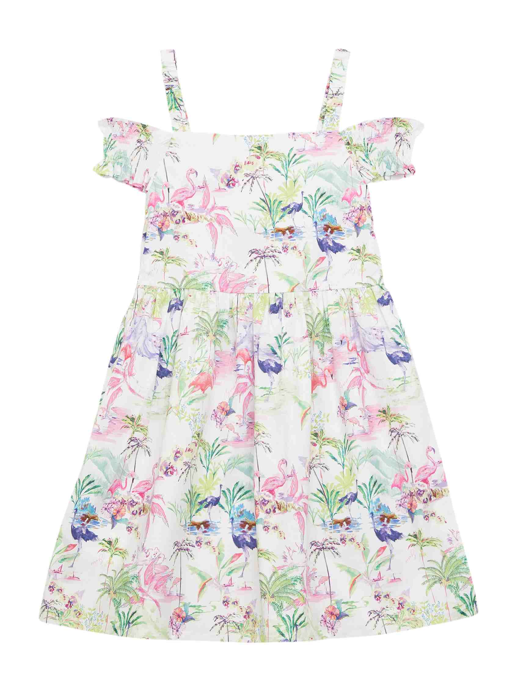 Multi Shoulder Strap Short Sleeves Printed Fit And Flare Dress