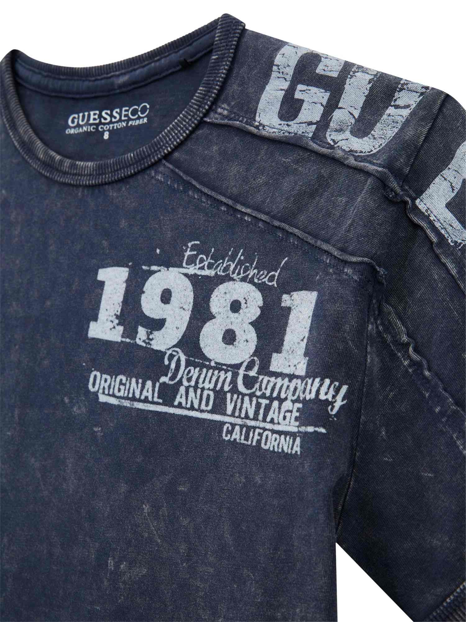 Elevate your little one's wardrobe with the Guess Navy Blue Cotton Print Boys Tshirt. Crafted from soft and breathable cotton, this versatile tee features a stylish print that adds a pop of fun to any outfit. Perfect for playdates or casual outings, this shirt offers comfort and style in one. Whether paired with jeans or shorts, this tshirt is sure to become a favorite go-to piece. Upgrade your child's look with this must-have addition to their closet.