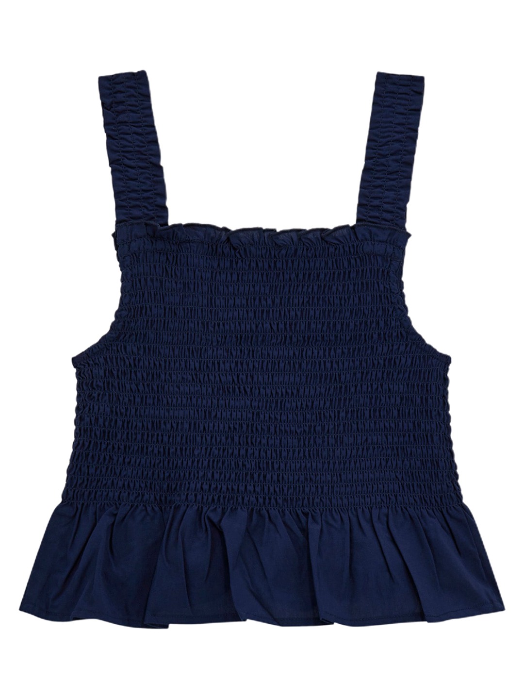 Navy Shoulder Strap Sleeveless Solid Smocked Tank Top