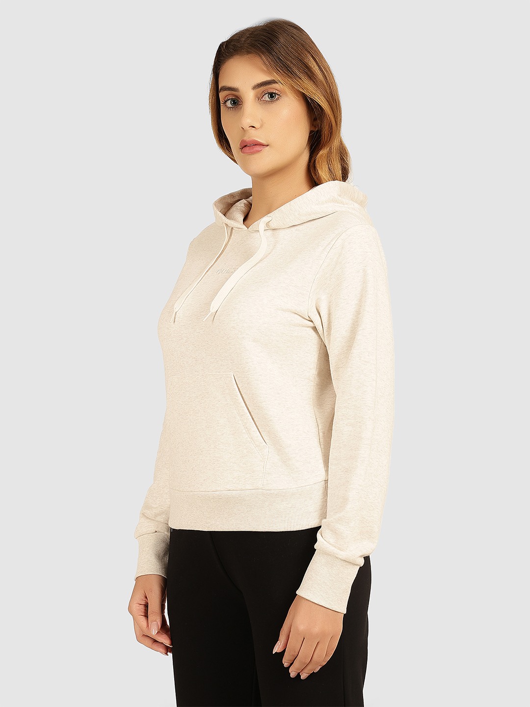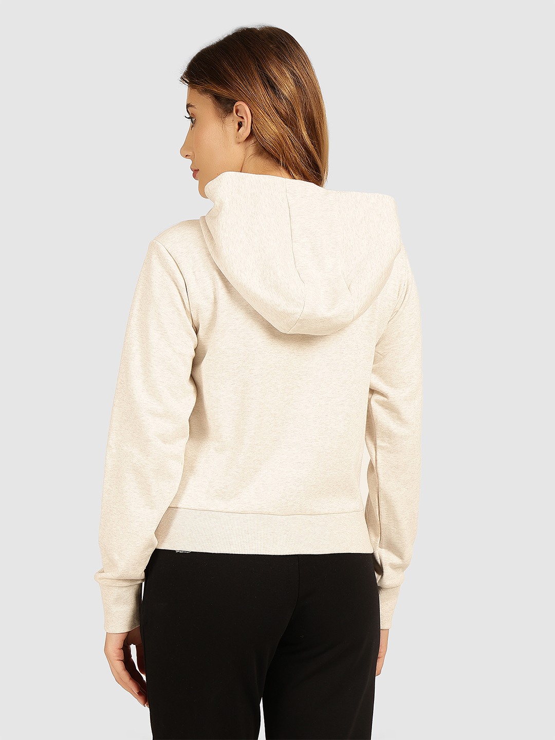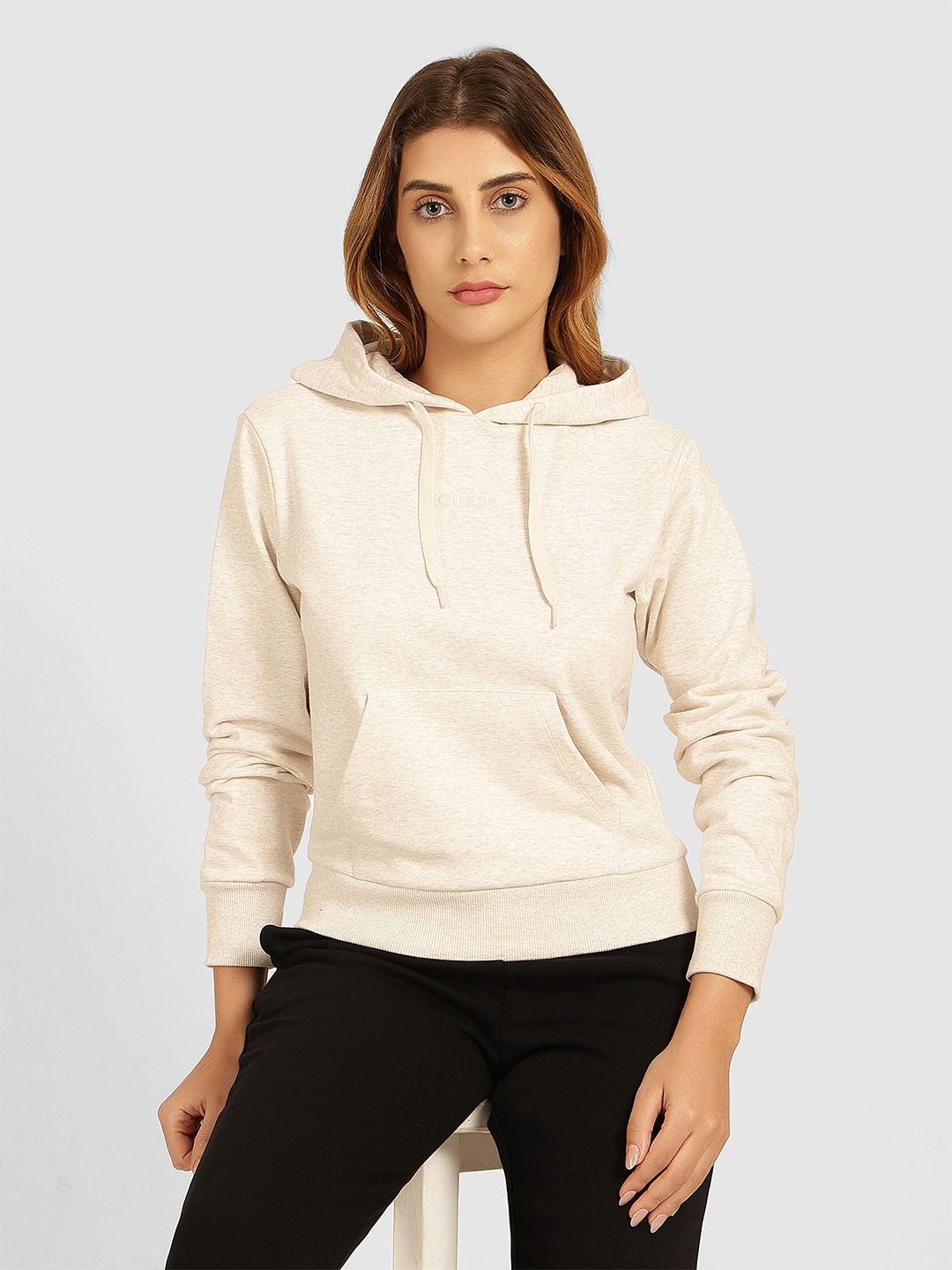 • The Guess Off-White Cotton Solid Hoodie for women is crafted from soft, breathable cotton with a comfortable, relaxed fit. Its clean, minimal design makes it perfect for casual outings, lounging, or everyday layering.