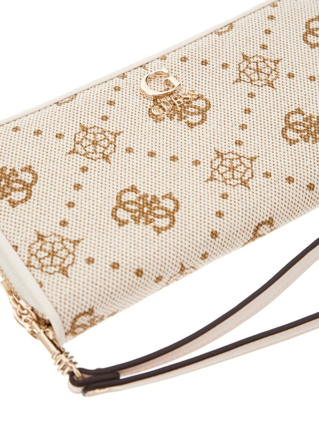 Guess Off White Logo Printed Neda Large Zip Around Wallet