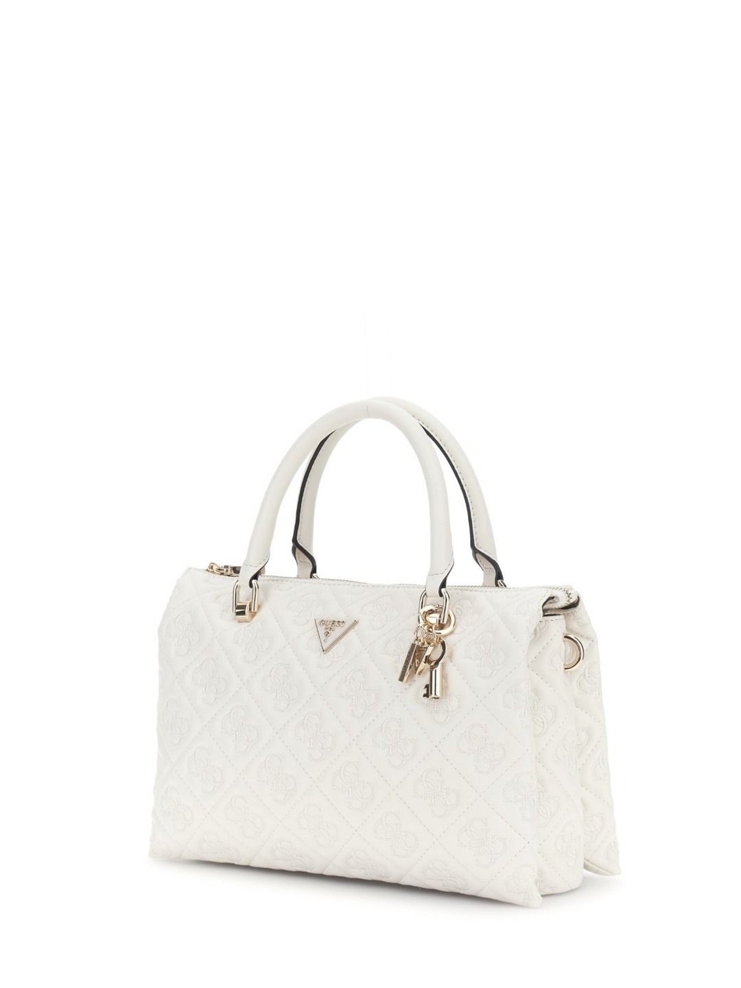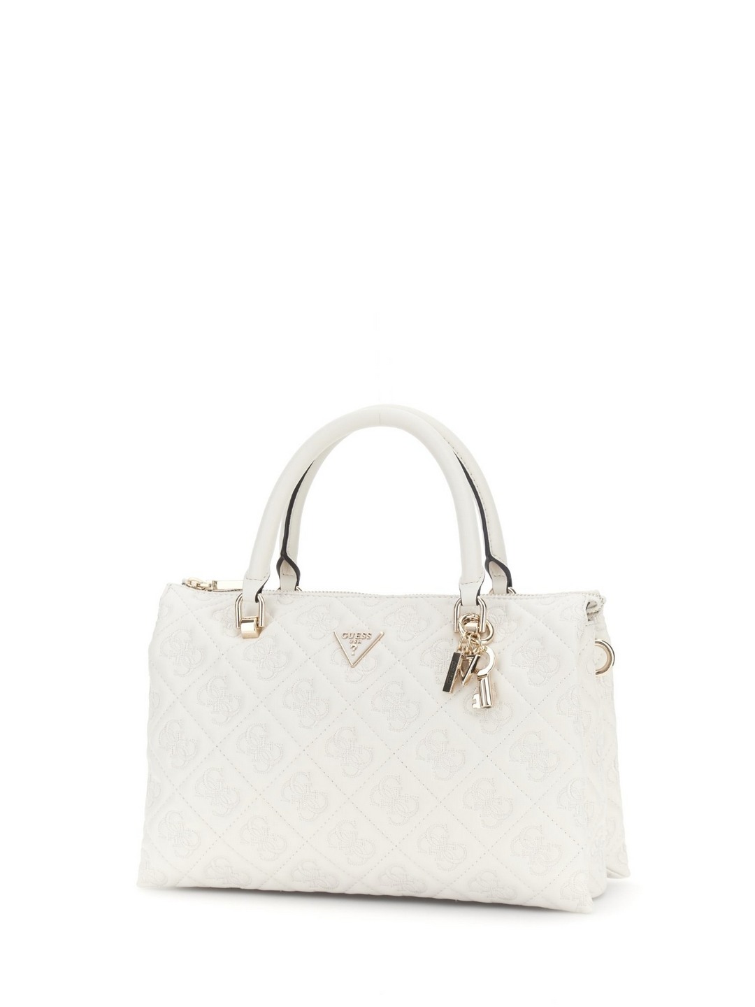 Guess Off White Quilted Adelasia Multi Comp Satchel Bag