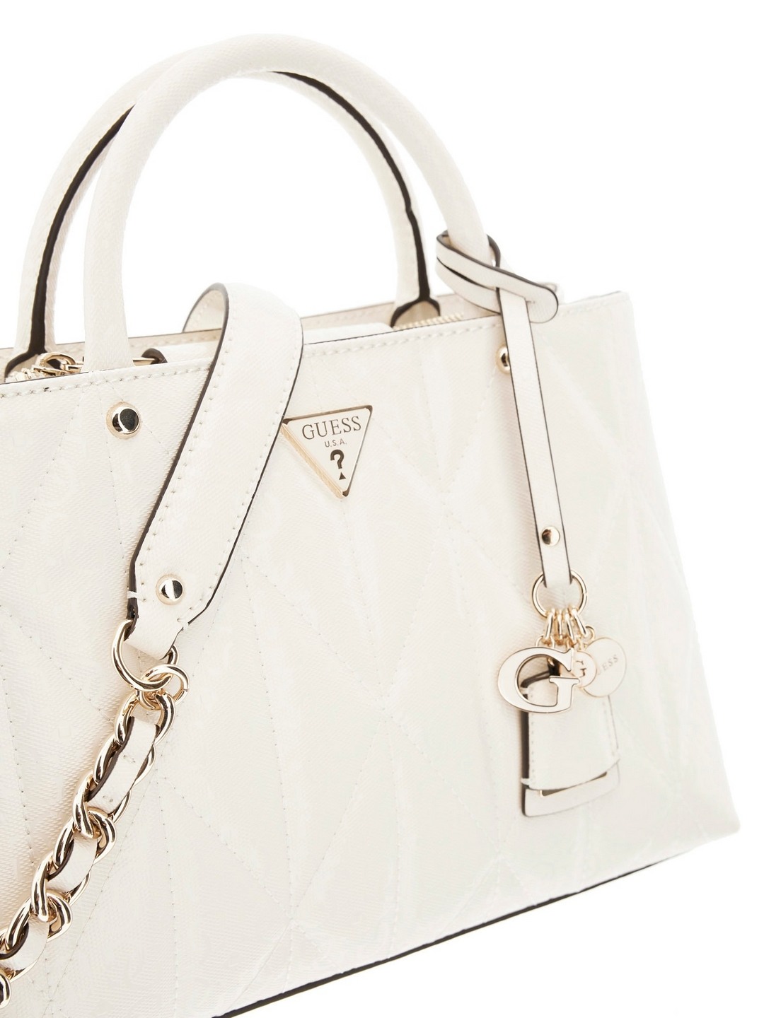 Guess Off White Quilted Aldina Girlfriend Satchel Bag