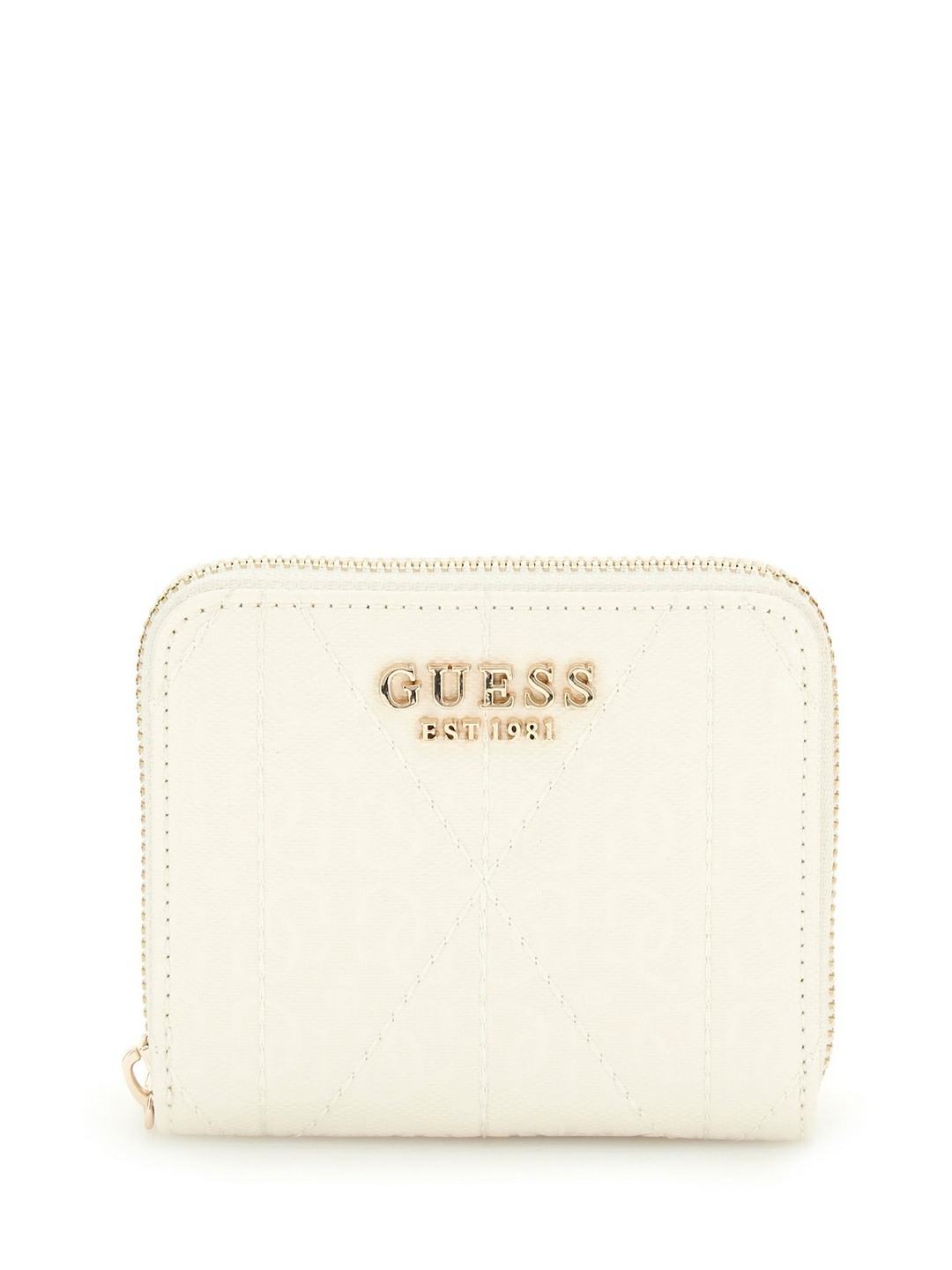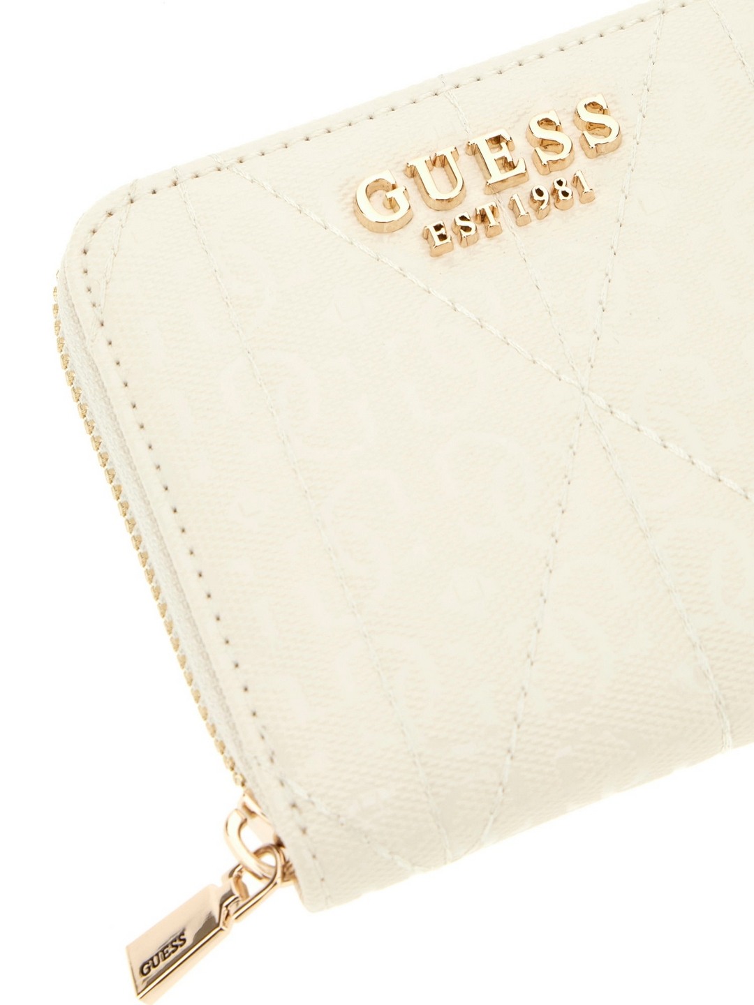 Guess Off White Quilted Aldina Small Zip Around Wallet