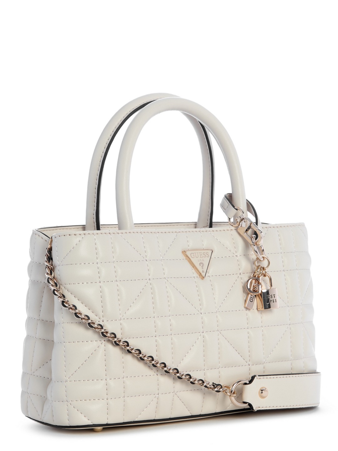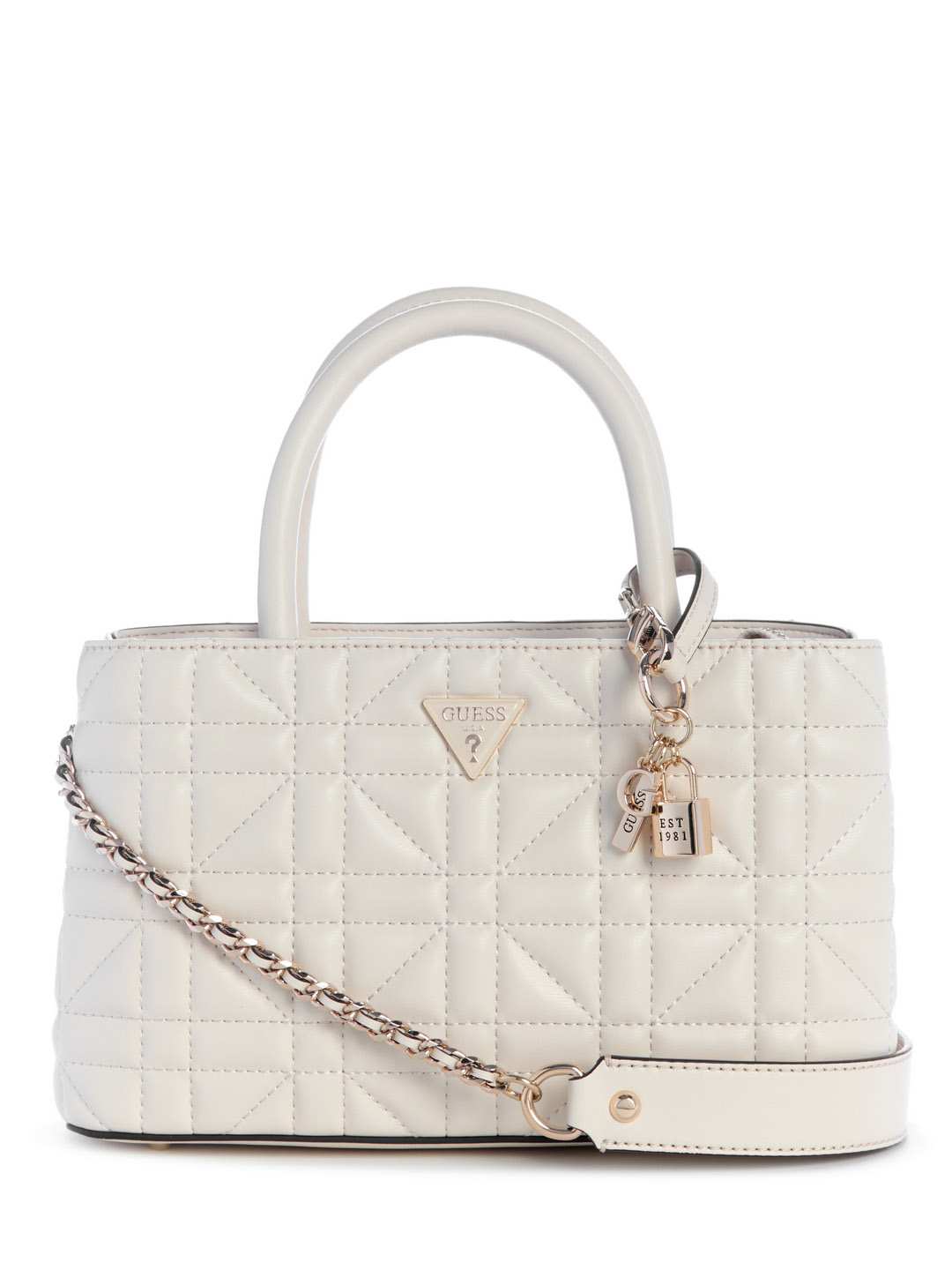 Introducing our elegant off white satchel bag, crafted from premium PU material for a sophisticated look and feel. This stylish accessory features a timeless quilted pattern that adds a touch of luxury to any outfit. Designed with practicality in mind, the bag includes a spacious interior to accommodate all your essentials, making it perfect for both everyday use and special occasions. The non-detachable strap ensures durability and comfort, allowing you to carry it effortlessly throughout the day. Its versatile off white color complements any wardrobe, making it a must-have addition to your collection. Whether you're heading to the office or out for a weekend brunch, this satchel bag is the perfect companion. Experience the perfect blend of style and functionality with this chic accessory that promises to elevate your fashion game. Don't miss out on this timeless piece that combines elegance and practicality in one beautiful package.