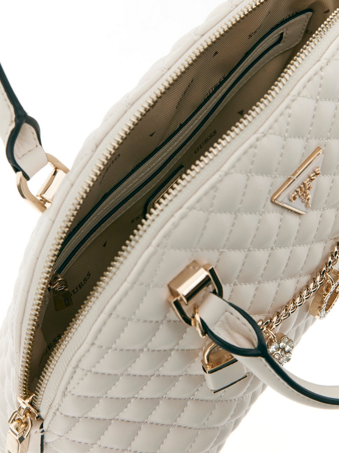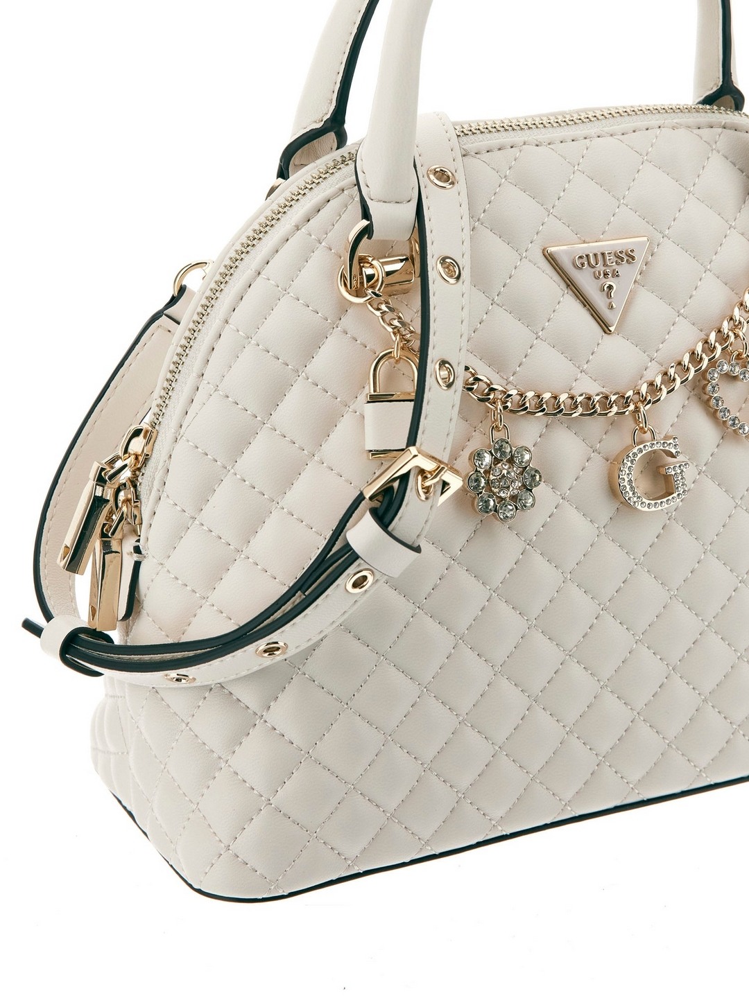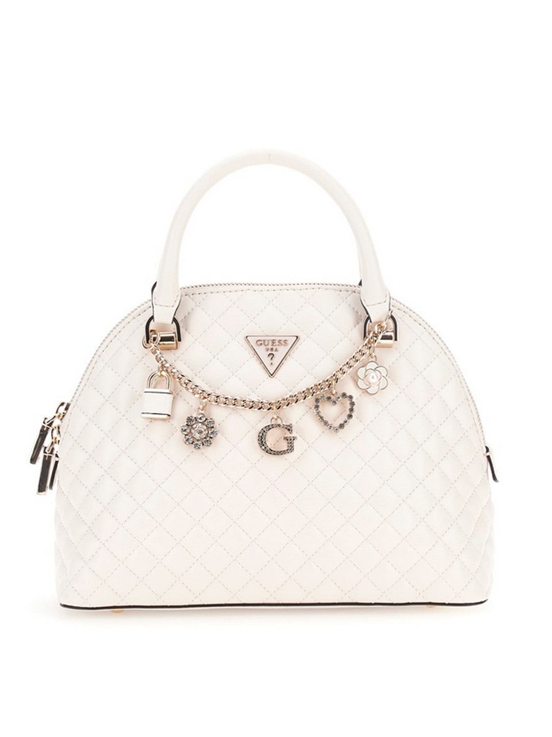 Guess Off White Quilted Everlee Dome Satchel Bag
