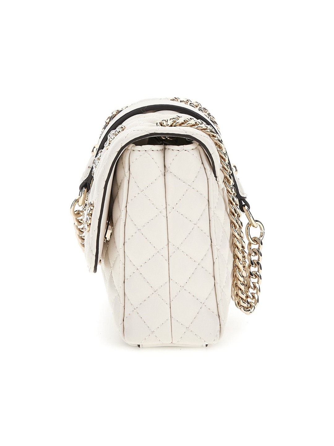 Guess Off White Quilted Everlee Mini Convertible Flap Crossbody Bag