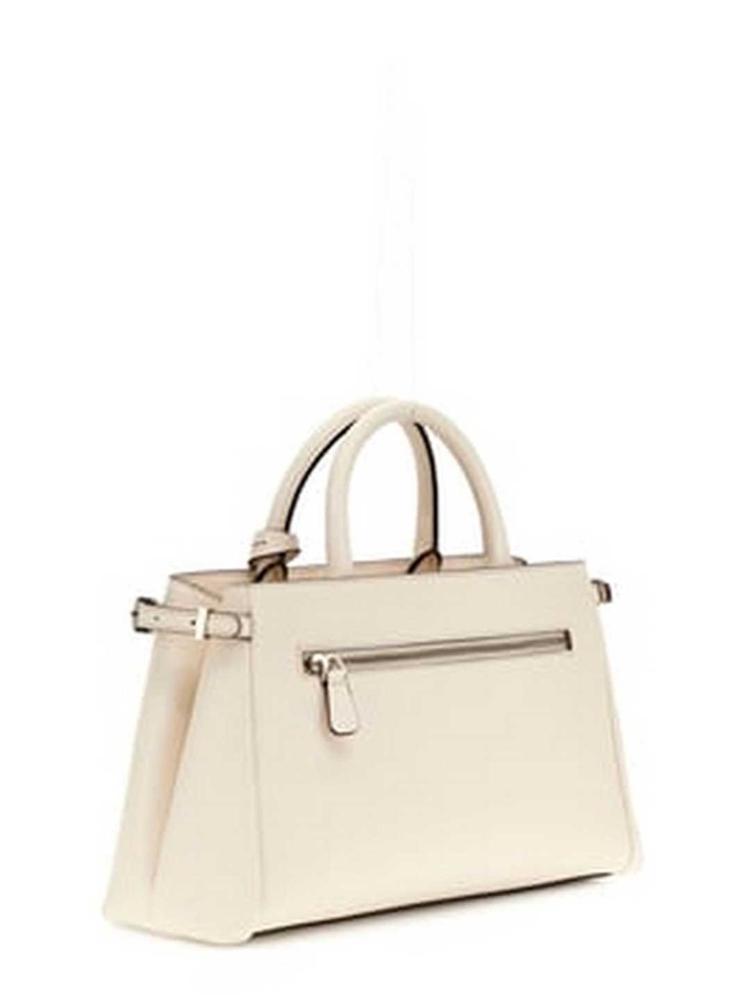 Guess Women Off White Textured Adjustable Detachable Strap Satchel Bag