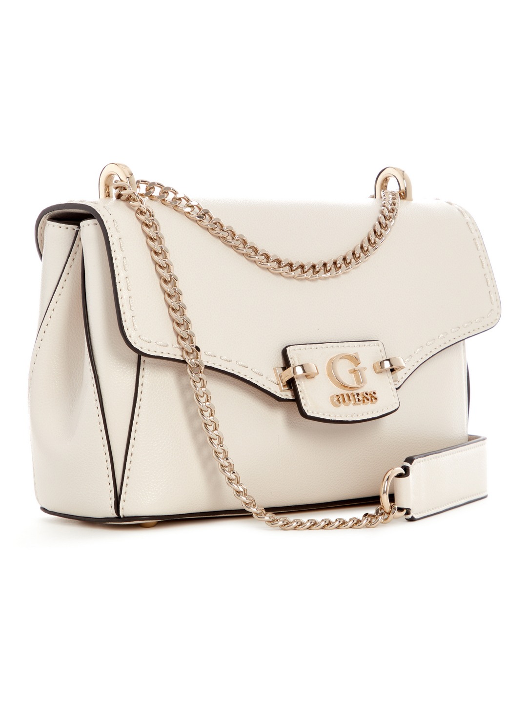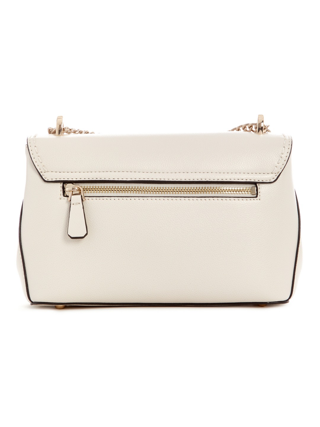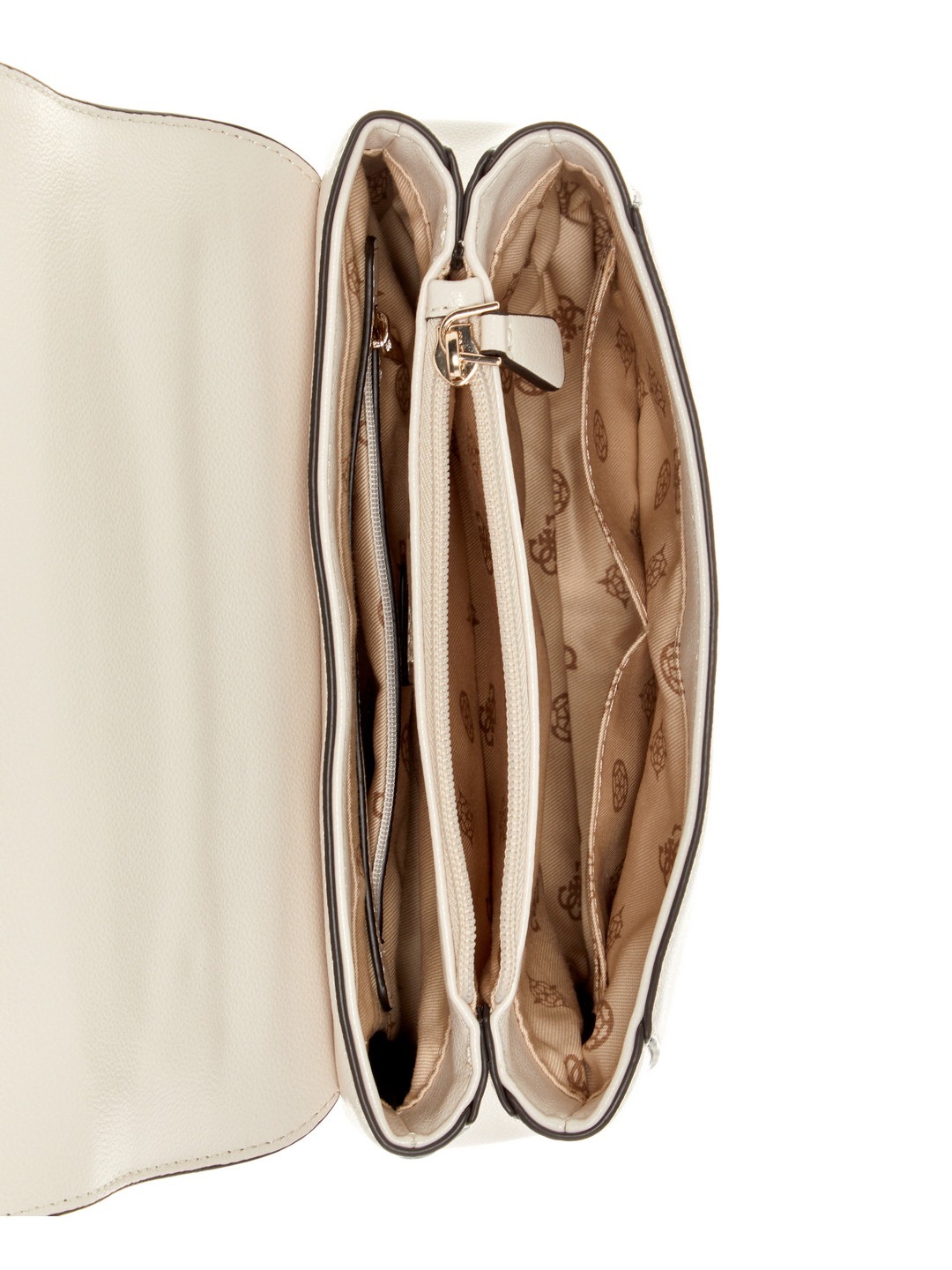 Guess Off White Solid Nastra Convertible Flap Crossbody Bag