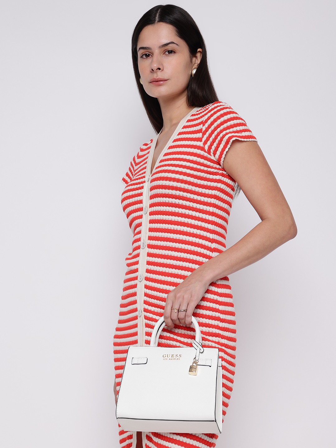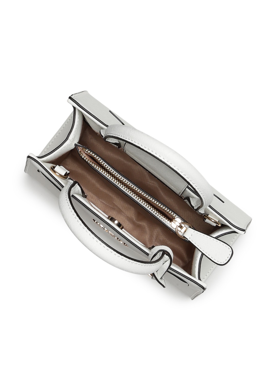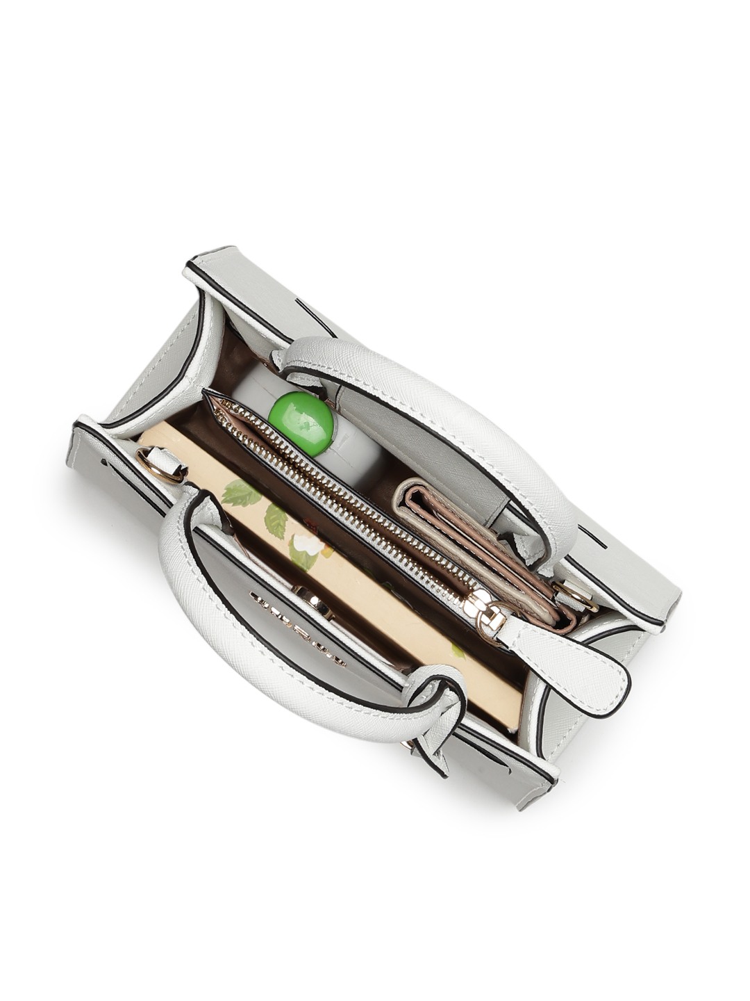 Discover the perfect blend of style and functionality with our off white satchel crafted from premium PU fabric. Designed for the modern woman, this elegant bag features a solid pattern that complements any outfit. Its spacious interior offers ample room for your essentials, while the sturdy handles ensure comfortable carrying. The sleek design is ideal for both casual outings and professional settings. Elevate your accessory collection with this versatile satchel that effortlessly combines fashion and practicality.