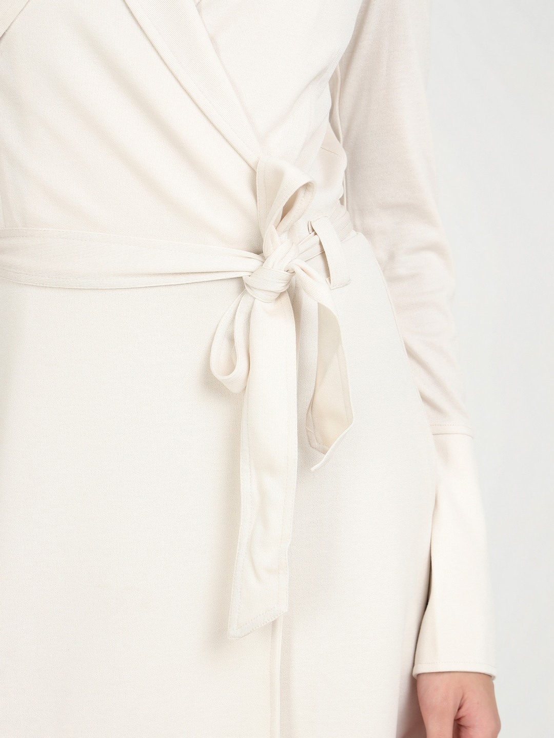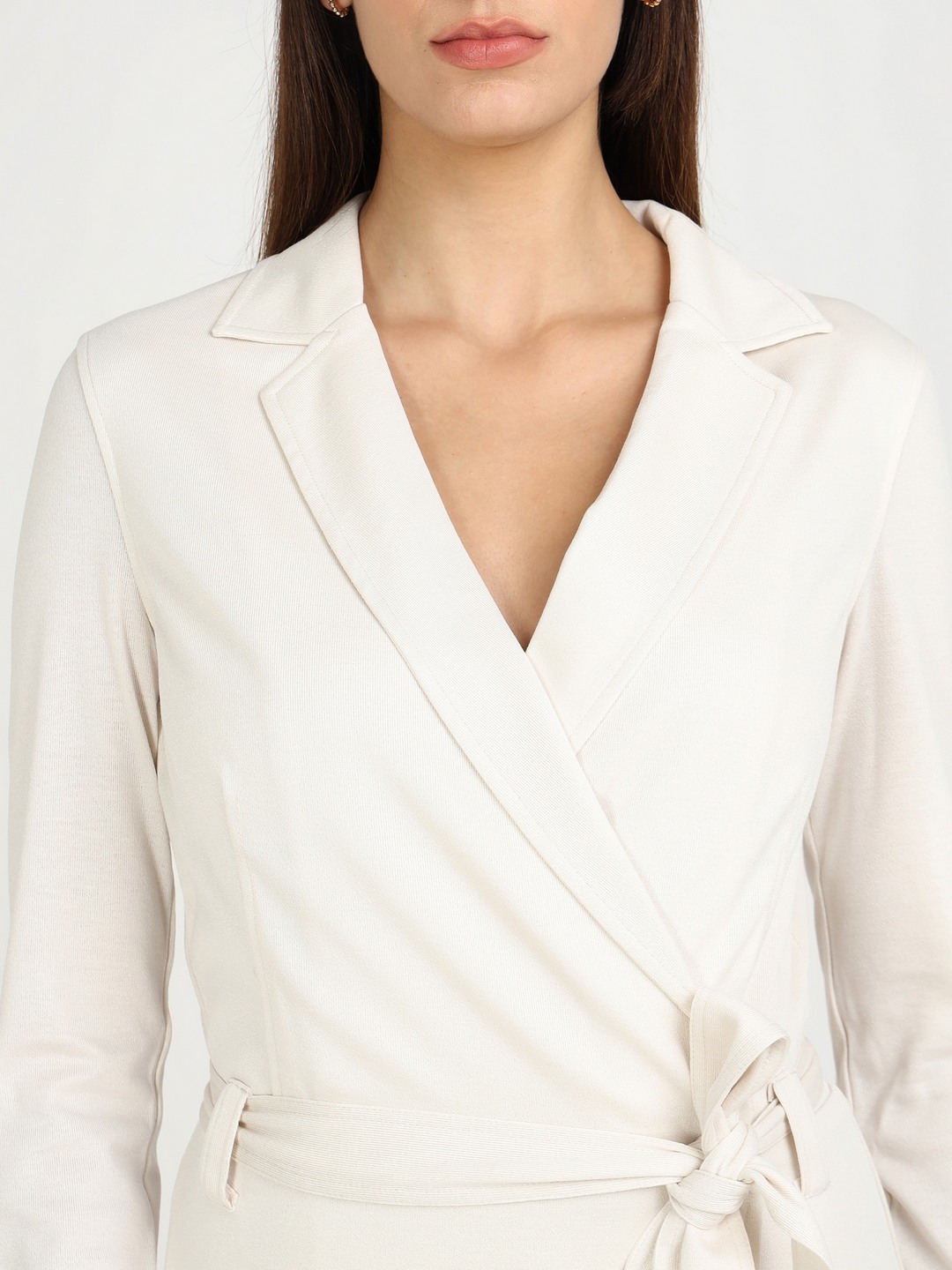 White Solid Notched Collar Full Sleeves A-Line Dress