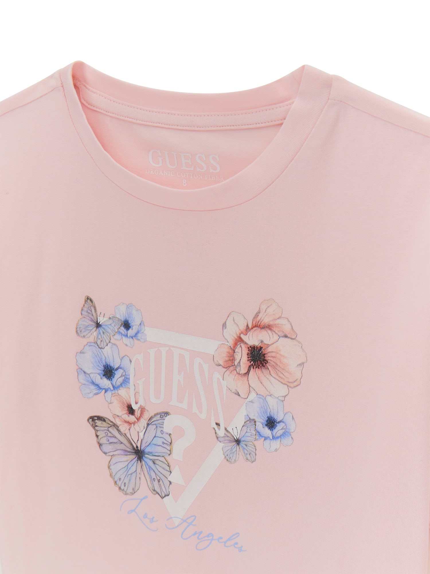Get your little fashionista ready to turn heads with the Guess Pink Cotton Print Girls Tshirt. Made from soft and breathable cotton, this vibrant tee features a fun and playful print that is sure to catch everyone's eye. Perfect for everyday wear or special occasions, this tshirt combines comfort and style effortlessly. Let your little one express her unique personality with this trendy piece that will surely become a wardrobe favorite.