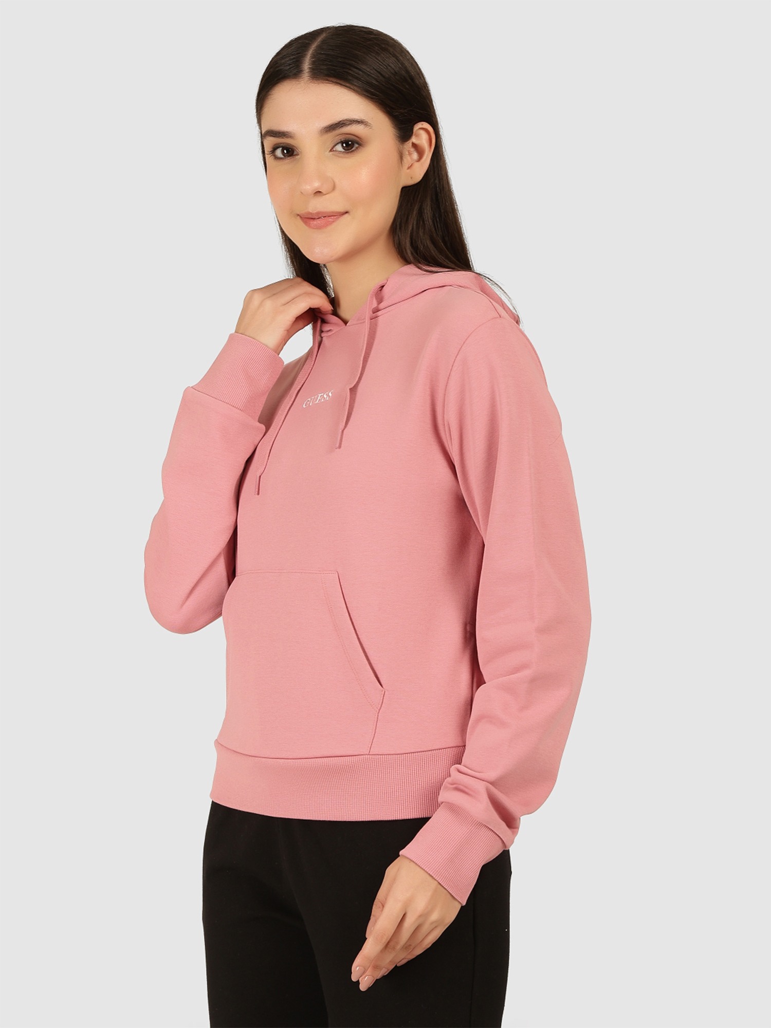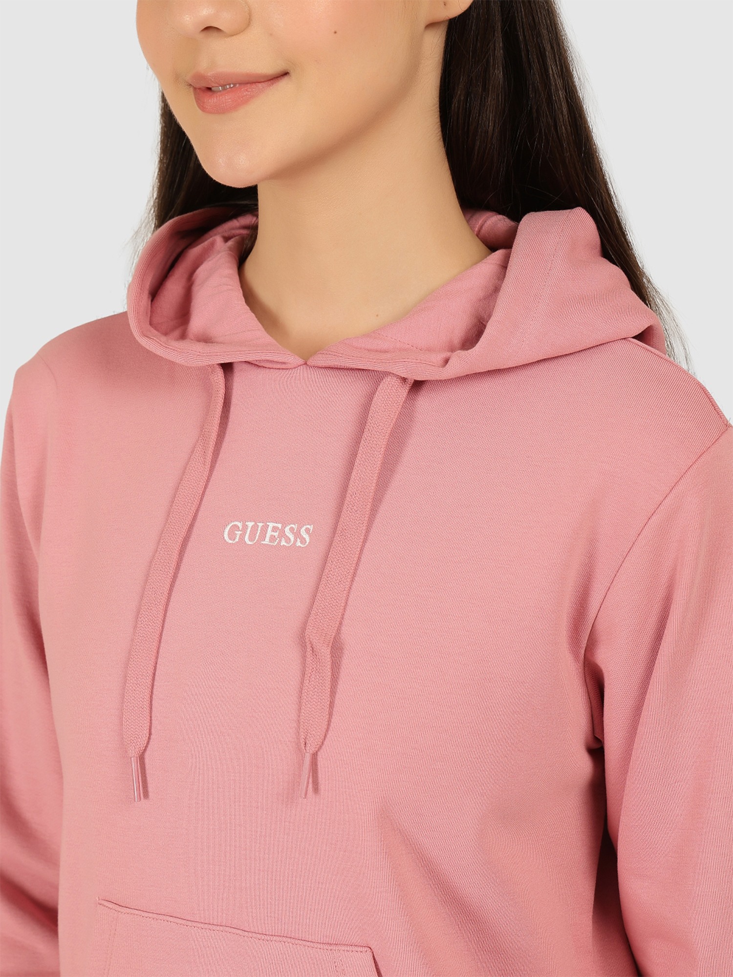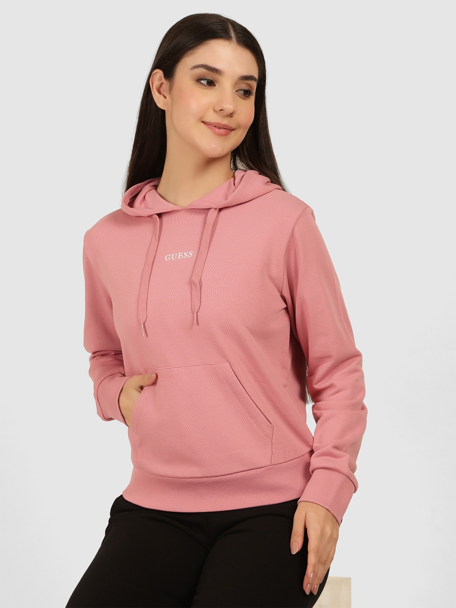 • The Guess Pink Cotton Solid Hoodie for women is made from soft, breathable cotton with a cozy, relaxed fit. Stylish and comfortable, it’s perfect for casual wear, lounging, or layering on cooler days.