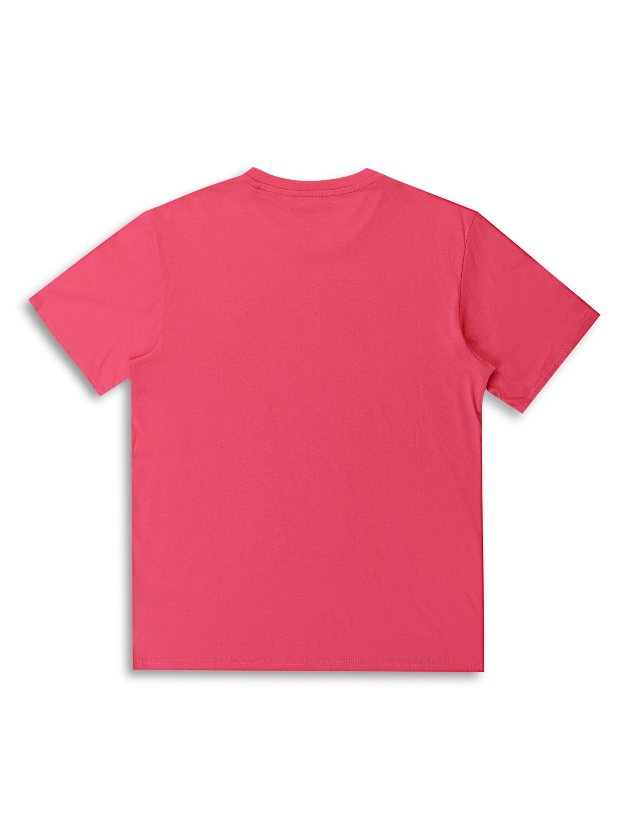 • Crafted from premium cotton, this Guess pink solid men’s T-shirt feels soft on the skin and stays breathable all day. The crew neck and regular fit deliver a clean look that pairs effortlessly with jeans or shorts.