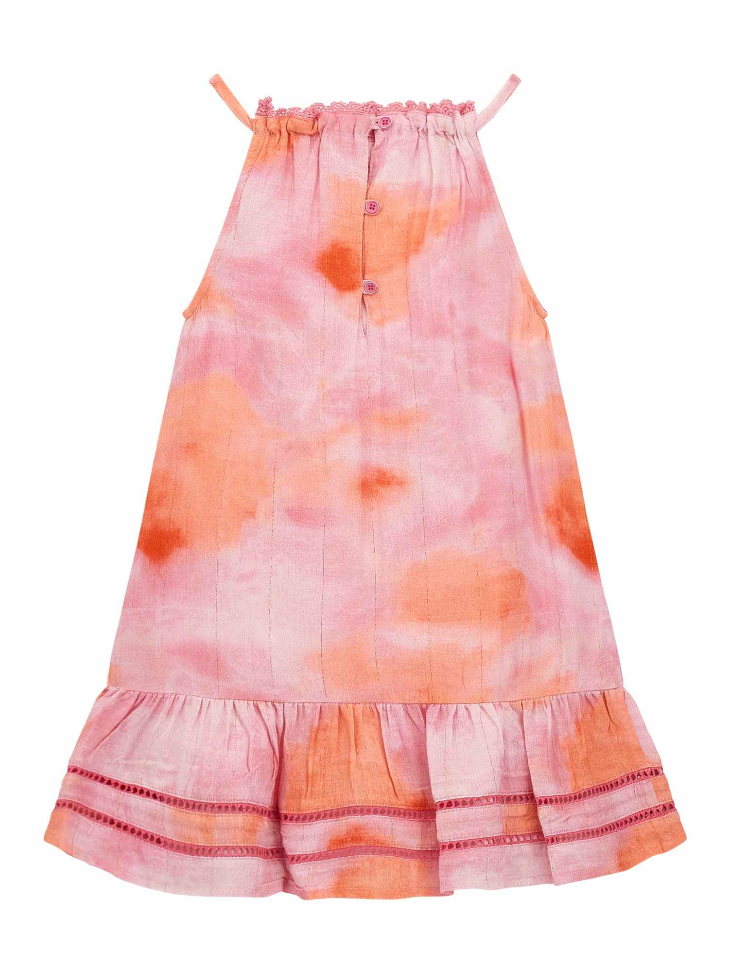 Pink Shoulder Strap Sleeveless Tie-Dye Tiered Dress