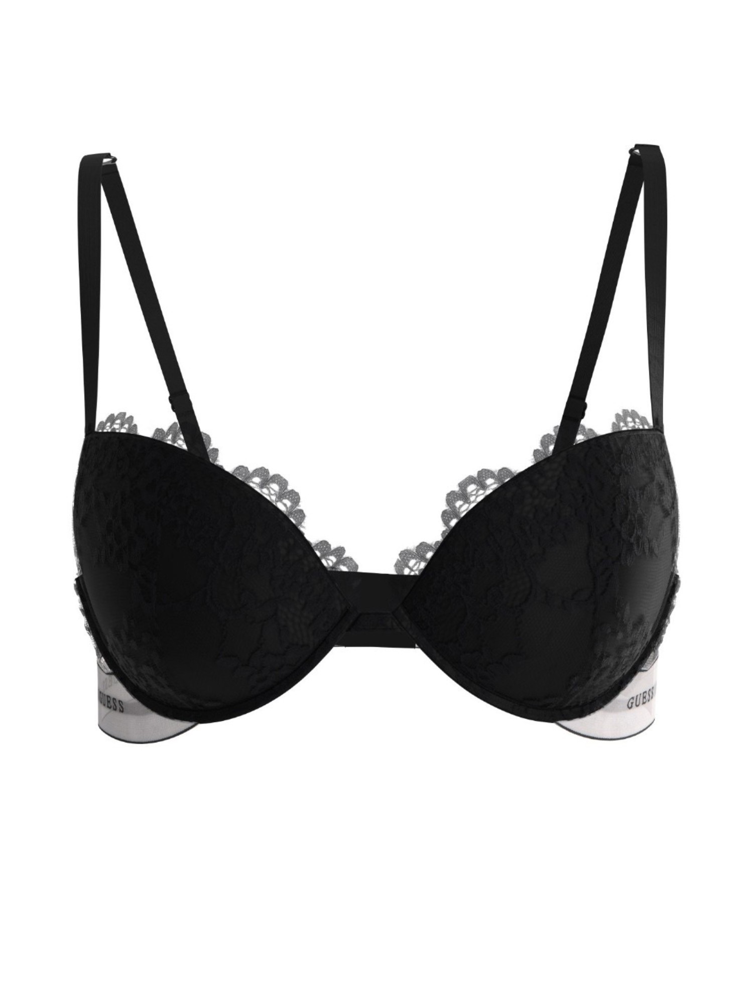 Elevate your lingerie game with our Guess Polyamide Half Coverage Self Design Black Push Up Bra. Featuring a flattering push-up design and comfortable wired regular straps, this bra provides the perfect combination of support and style. The back closure ensures a secure fit, while the sleek black self design adds a touch of sophistication. Feel confident and sexy in this must-have addition to your lingerie collection.