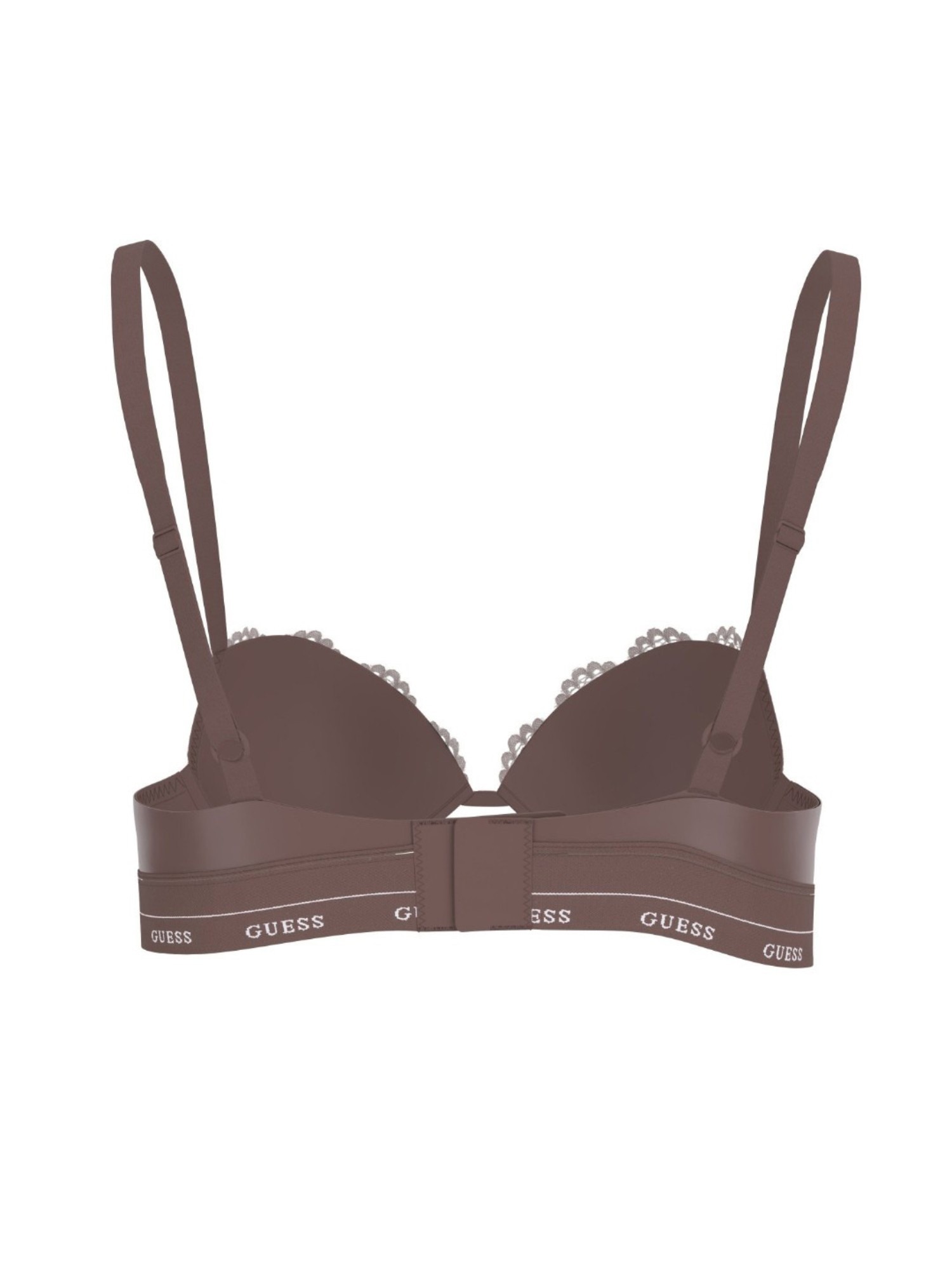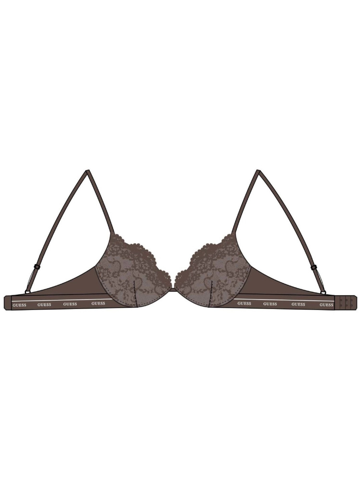 Elevate your lingerie collection with our Guess Polyamide Half Coverage Self Design Brown Push Up Bra. This wired, back closure bra offers optimal support and comfort, while the push-up design enhances your natural curves for a flattering silhouette. The sleek self-design adds a touch of elegance, making this bra perfect for everyday wear or special occasions. With regular straps for added convenience, this bra is a versatile and stylish addition to your wardrobe. Experience the perfect blend of style and functionality with our Guess Push Up Bra.