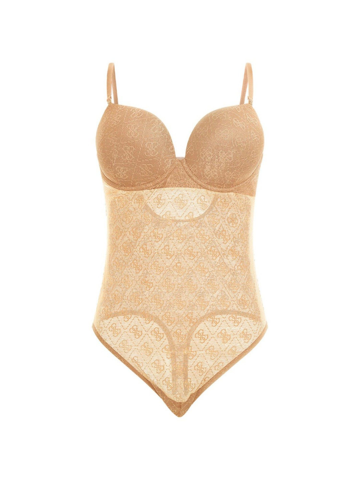 Elevate your wardrobe with our Guess Polymide Self Design Sleeveless Brown Nora Padded Body Knit Top. This versatile piece combines style and comfort effortlessly, with its sleek design and padded body ensuring a flattering fit. The self-design adds a touch of sophistication, making it perfect for both casual outings and special occasions. Stay chic and confident all day long in this must-have top that will quickly become a staple in your closet.