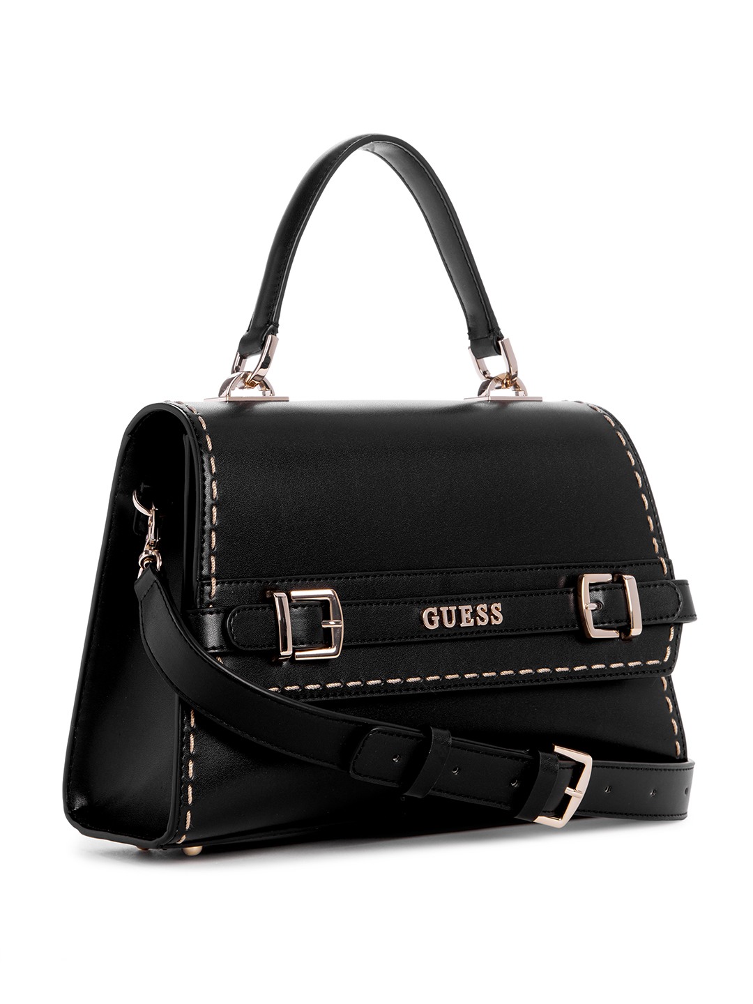 Guess Polyurethane Black Solid Women Sestri Top Handle Flap Shoulder Bag