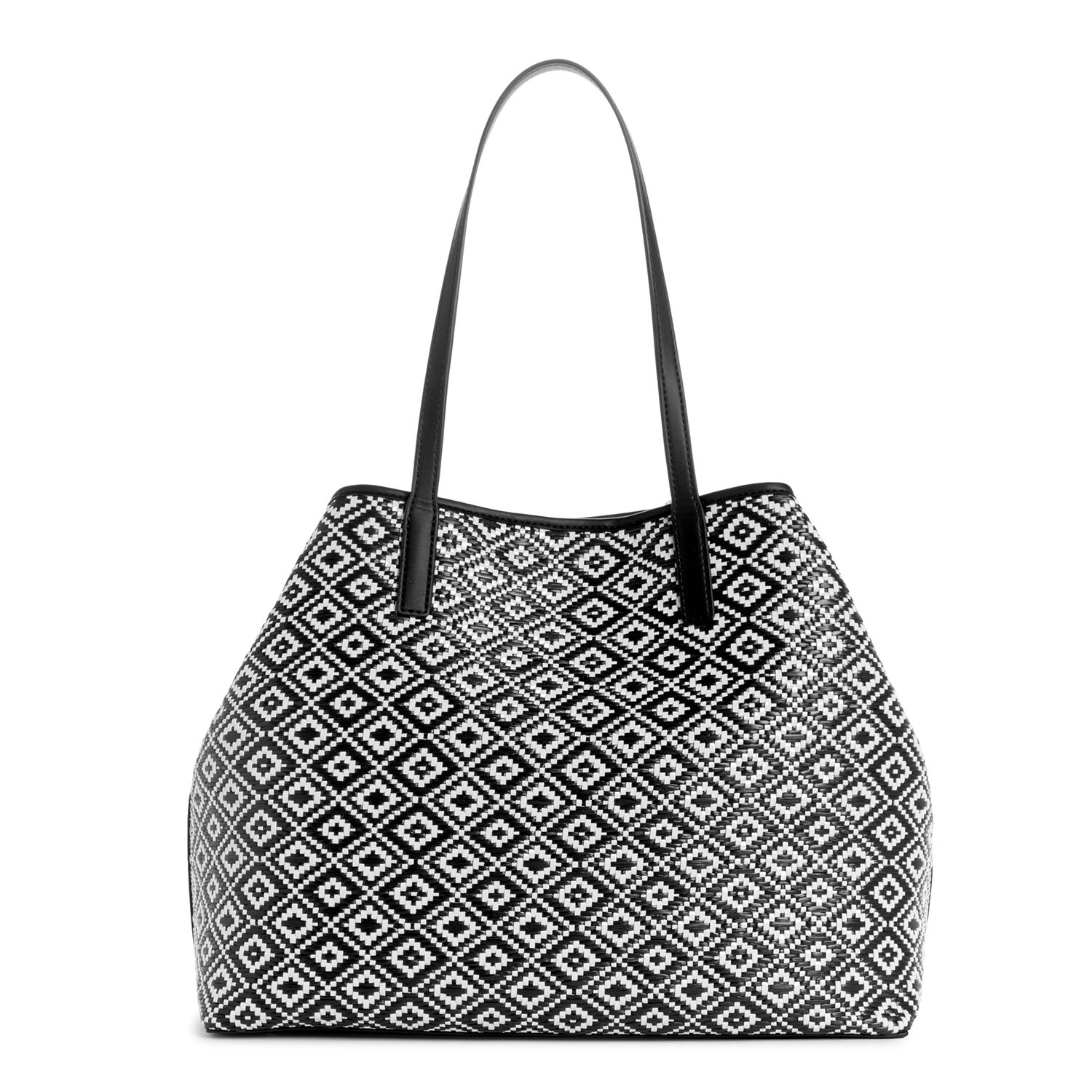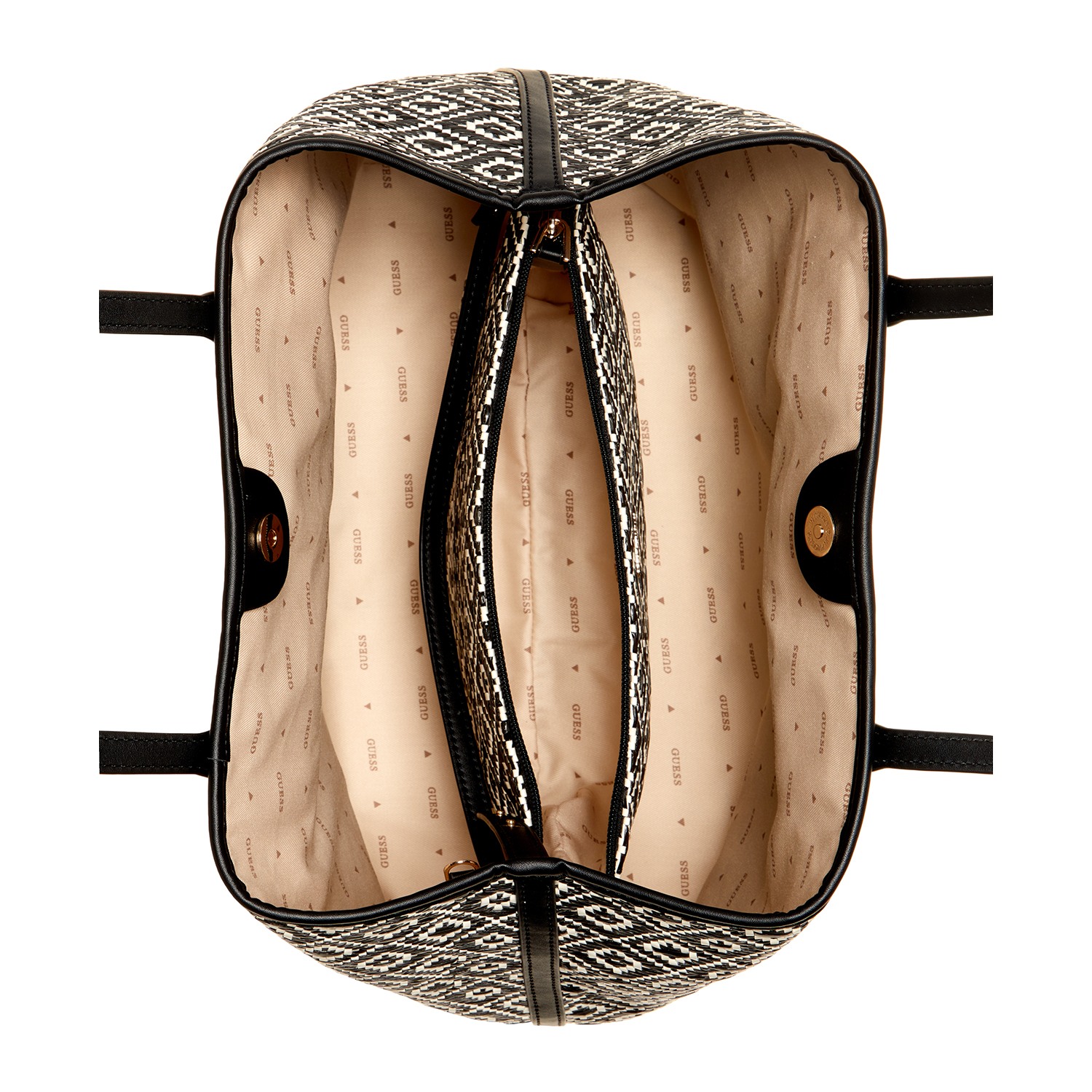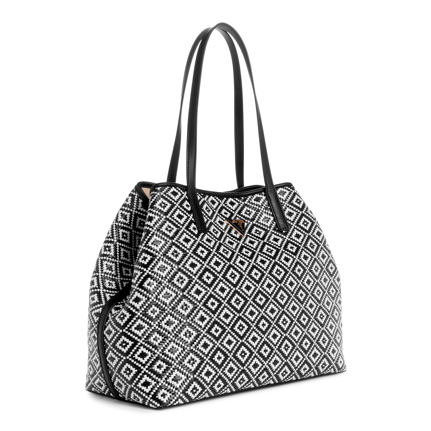 Guess Polyurethane Black Textured Women Vikky Ii Large 2 In 1 Tote Bag