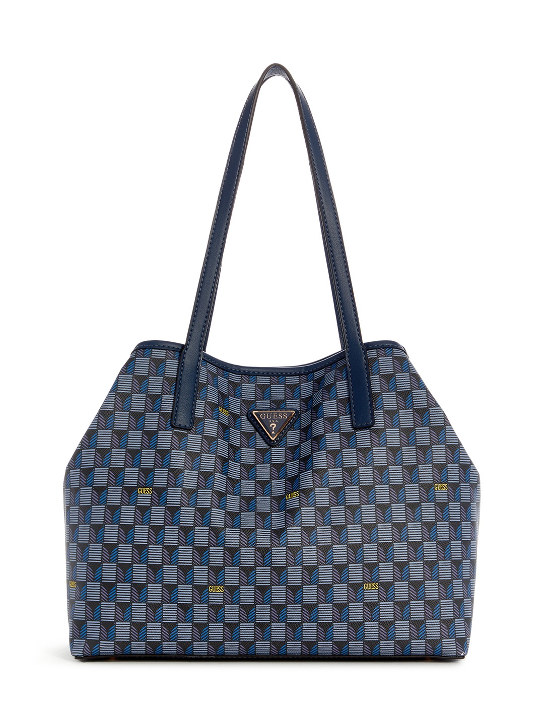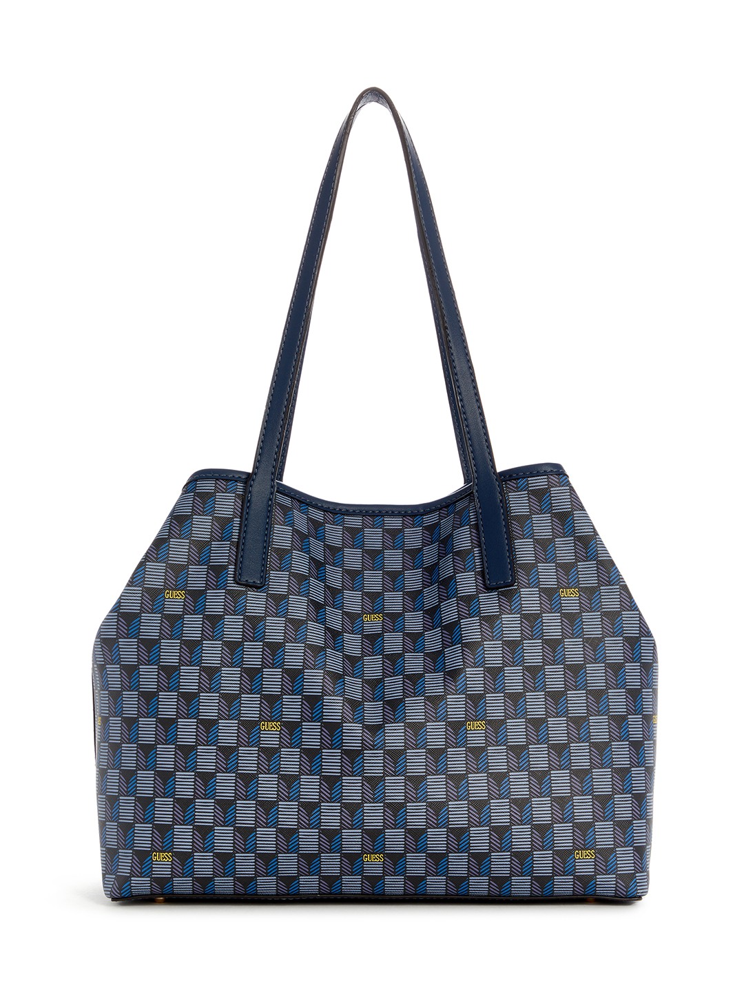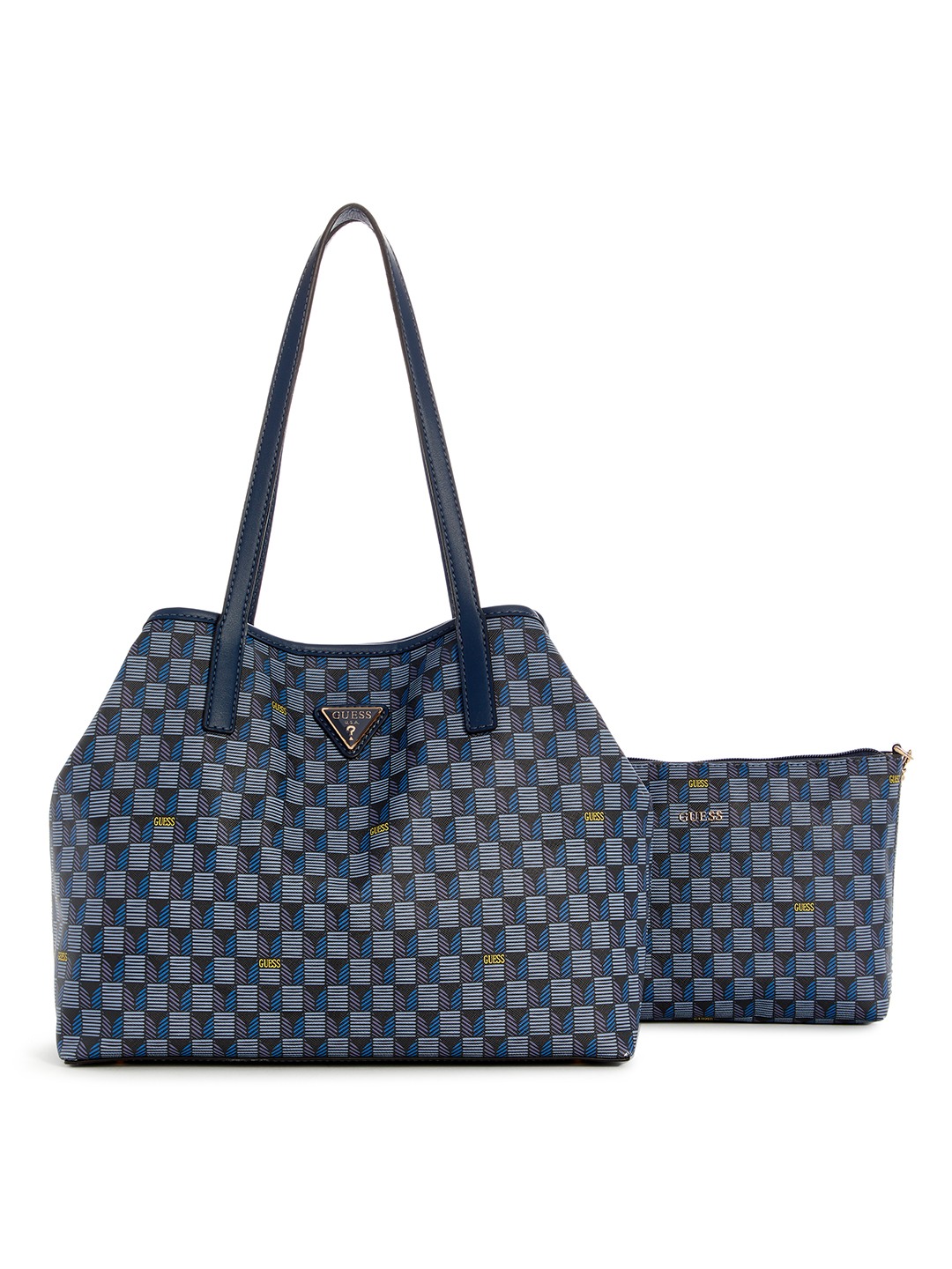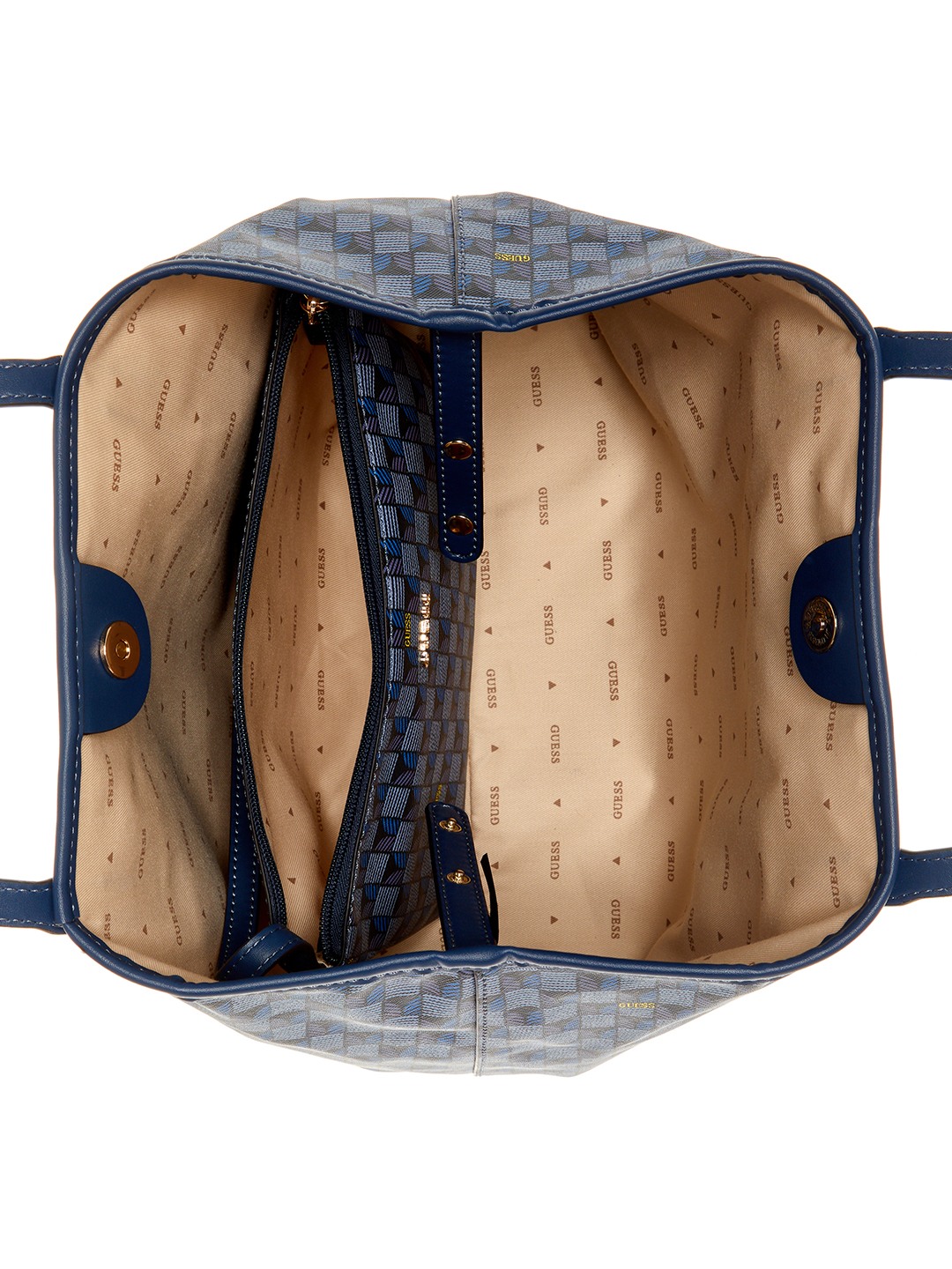 Guess Polyurethane Blue Printed Women Vikky Ii 2 In 1 Tote Bag